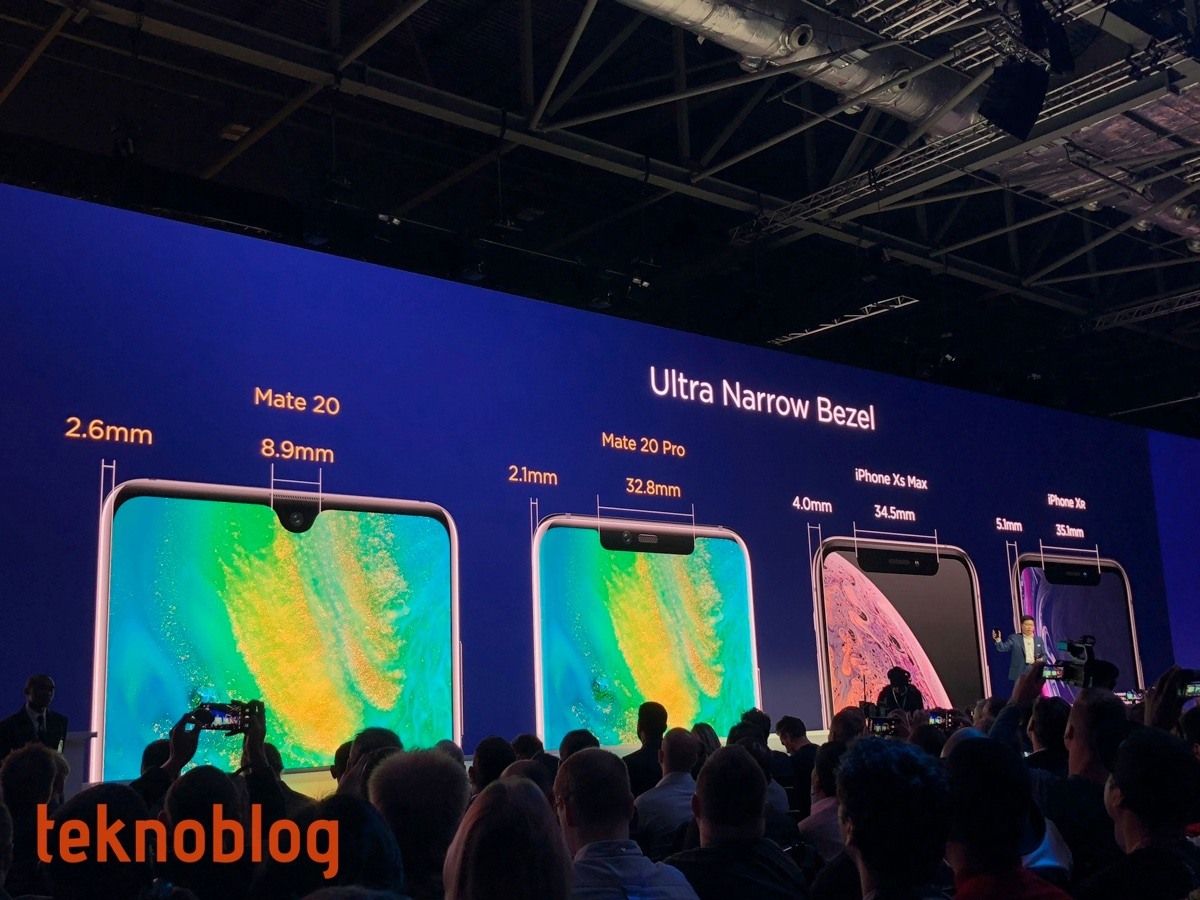 Huawei Mate 20 Pro, 6.3 inç büyüklüğünde OLED ekran taşıyor. 19.5:9 görüntü oranına sahip bu ekran, 1440p çözünürlük sağlıyor. Mate 20 ise FHD+ çözünürlüğe sahip 6.53 inçlik bir LCD panelle geliyor. Bu panelin görüntü oranı ise 18.7:9. Çiğ damlası olarak tanımlanan çentik ve iyice inceltilen alt çerçeve, Mate 20’nin bu görüntü oranına ulaşmasını mümkün kılıyor.