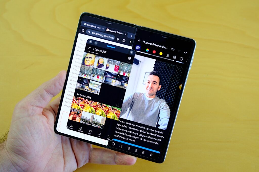 Çoklu görev kullanımı, Huawei Mate X6’nın en güçlü yazılım özelliklerinden biri. Bölünmüş ekran modu, aynı anda iki uygulamanın yan yana çalışmasına imkan tanıyor. Örneğin, bir yanda tarayıcıda araştırma yaparken, diğer yanda notlarınızı alabiliyorsunuz. Benzer şekilde, WhatsApp üzerinden mesajlaşırken aynı anda YouTube videosu izlemek mümkün. Huawei, pencere yönetimini geliştirdiği için iki uygulamanın birbirini engellemeden sorunsuz çalışmasını sağlıyor. Aynı zamanda kayan pencere modu, üçüncü bir uygulamayı küçük bir pencere halinde açmanıza olanak tanıyor. Bu sayede, çoklu görev yapmak hiç olmadığı kadar pratik hale geliyor.