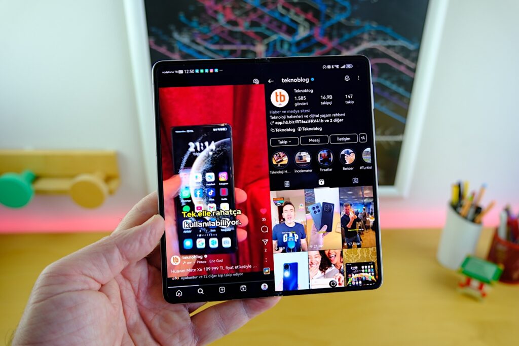 Katlanabilir ekran deneyimi, Huawei Mate X6’da tüm yönleriyle başarılı bir şekilde uygulanmış. İç ekran açıkken, kendi kendine kapanan uygulamalar veya oranı bozuk çalışan yazılımlar gibi sorunlar yaşanmıyor. Huawei, uygulama ölçekleme teknolojisi sayesinde, her uygulamanın iç ekrana uygun şekilde otomatik olarak ayarlanmasını sağlıyor. Bazı uygulamalar ekranın tamamına yayılırken, bazıları ikiye bölünmüş şekilde çalışmaya devam ediyor. İster tam ekran modunda içerik tüketin, isterseniz iki uygulamayı aynı anda açarak verimli biçimde çalışmayı isteyin, Huawei Mate X6’nın esnek yazılım yapısından tam anlamıyla faydalanabiliyor.