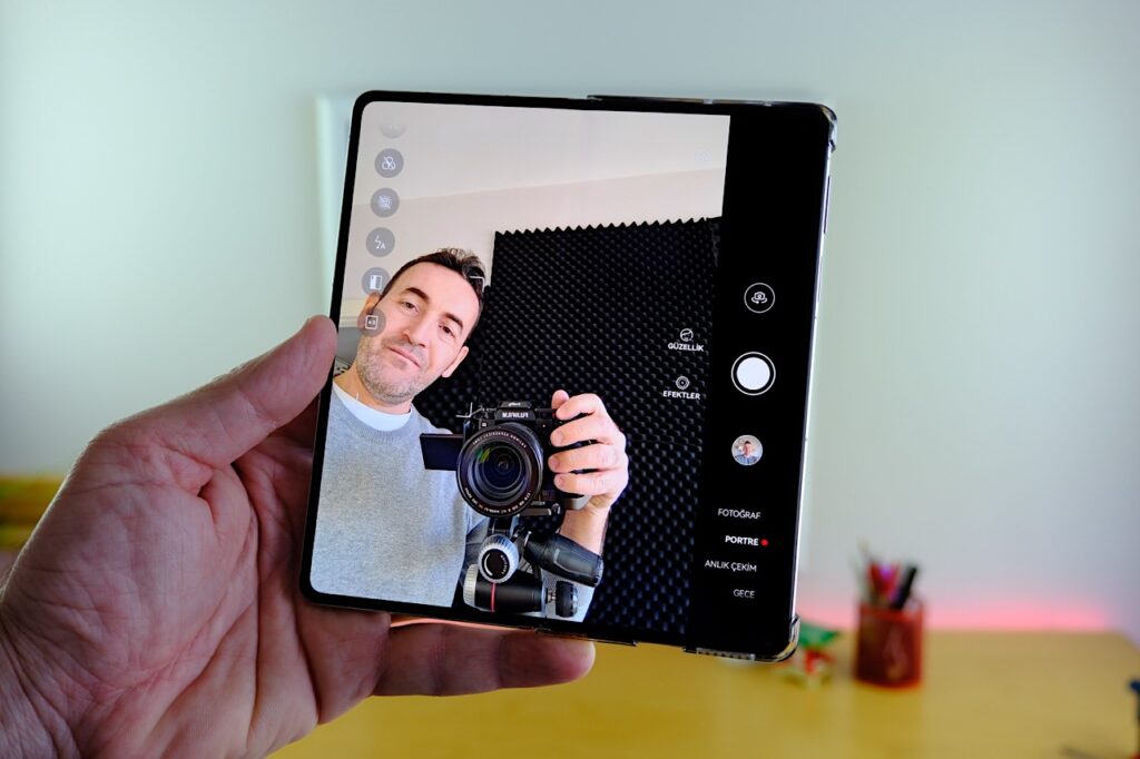 Huawei Mate X6’nın katlanabilir form faktörü, fotoğraf ve video çekiminde rakipsiz avantajlar sağlıyor. Kapak ekranı sayesinde, telefon açık durumdayken, kapak ekranını kullanarak ana kamerayla selfie çekebilirsiniz. Bu, özellikle yüksek kaliteli portreler ve vlog çekimleri için büyük bir artı sağlıyor. Cihazı yarı açık konumda kullanarak, bir tripod olmadan sabit çekimler yapmak mümkün hale geliyor. Katlanabilir tasarım sayesinde, cihaz masaya konularak uzun pozlama veya düşük ışık çekimlerinde ekstra stabilizasyon elde ediliyor. Huawei’nin yapay zeka destekli çekim modları, sahneyi otomatik olarak algılayarak en iyi renk ve ışık dengesini sağlıyor. Kullanıcı, profesyonel ayarlarla uğraşmadan her ortamda en iyi kareyi yakalayabiliyor.