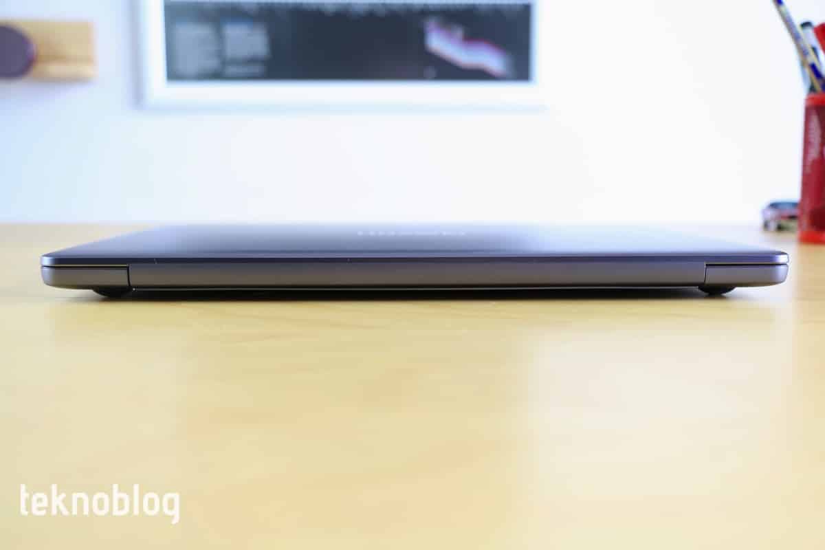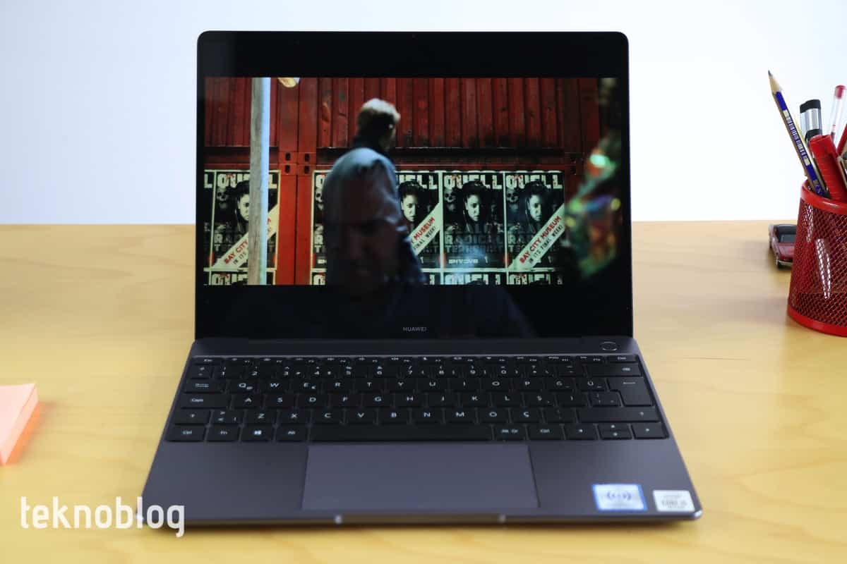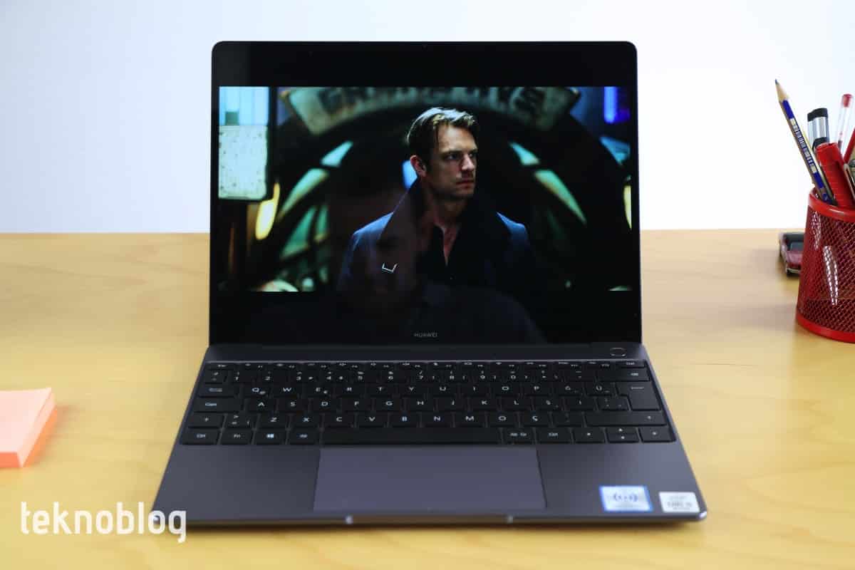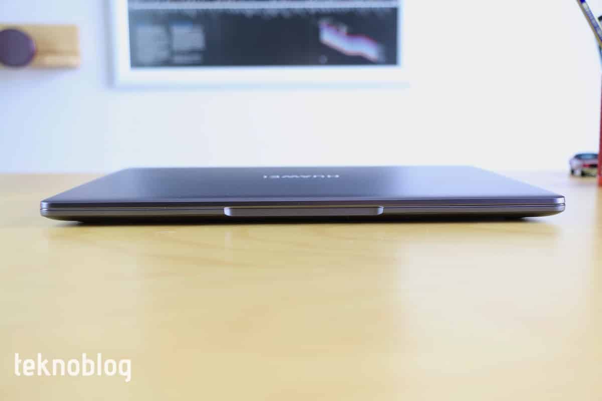 Metalik gövde 1.3 kilogram ağırlığıyla çantada veya elde rahatlıkla taşınabiliyor. 14.9 milimetrelik kalınlığı da ergonomik açıdan avantaj sağlıyor. Aynı zamanda dizüstü bilgisayarın çantada da daha fazla yer kaplamasının önüne geçiyor. Dizüstü bilgisayarın 13 inç ekranı var, ancak normal 13 inç ekranlı bilgisayarlara göre daha az bir alan kaplıyor. Bunda yüzde 88’lik ekran-gövde oranının payı var. Huawei’nin FullView olarak adlandırdığı bu ekran kapak kısmının çok büyük bir kısmının ekranla kaplanmasını sağlıyor. Ekranın altındaki dar bir çerçevede Huawei logosu var. Huawei, web kamerasını da ekranın üstünde kalan ince çerçeveye yerleştirmeyi başarmış.