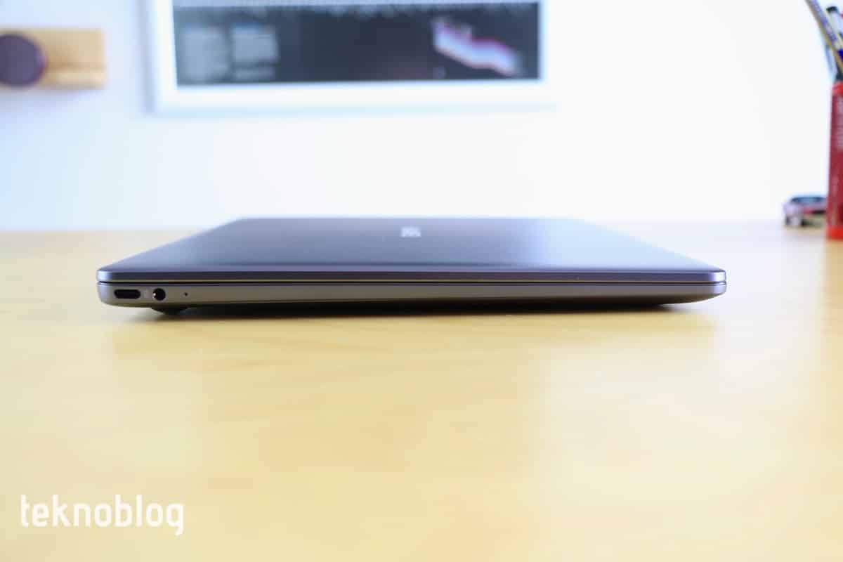 Port seçenekleri sınırlı. Sol kenarda bir, sağ kenarda bir olmak üzere iki adet USB-C portu var. Bunlardan sadece soldaki USB-C portu şarjı destekliyor. Yani, dilediğiniz portu şarj için kullanamıyorsunuz. Bu iki port da USB 3.1 Gen 1 desteğine sahip, yani saniyede 5 Gbps’lik maksimum hızı destekliyor. Bunun yanı sıra 3.5mm kulaklık ve mikrofon jakı da sol kenarda, USB-C portunun hemen yanında konumlandırılmış.