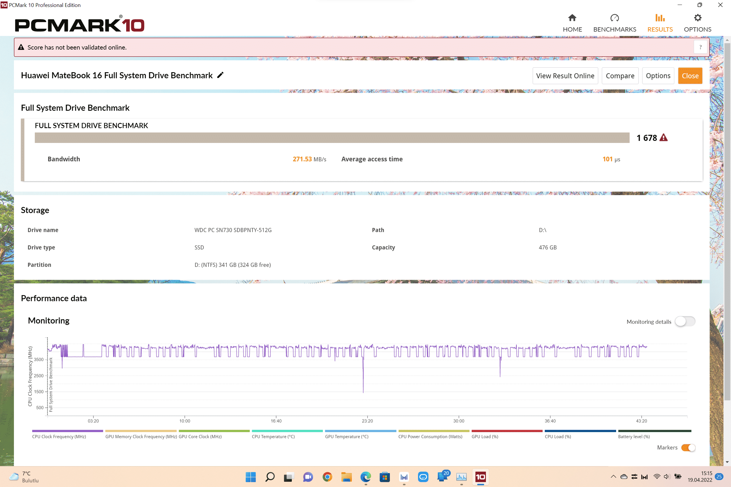 MateBook 16’da AMD Ryzen 7 5800H işlemcinin yanında dahili Radeon grafik işlemci birimi var. 16 GB RAM ve 512 GB SSD de diğer donanım bileşenleri arasında bulunuyor. 16 GB RAM, aynı anda birçok uygulamayı açma konusunda çoğu kullanıcının beklentilerini rahatlıkla karşılayacaktır. 512 GB SSD ise, daha önce deneyimlediğimiz Huawei bilgisayarları gibi iki farklı bölüme ayrılmış. Yaklaşık 120 GB kapasiteli C dizini Windows sistem dosyaları ile doldurulmuş durumda. Eğer başlangıçta birkaç ayar yapmazsanız bu dizinin dolduğunu görebilirsiniz. Disk hacimlerinde oynama yapabilir veya Microsoft Store’dan indirilecek yeni uygulamalar için daha yüksek kapasiteli D dizini varsayılan olacak biçimde ayarlama yapabilirsiniz.