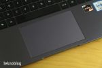 Klavyenin hemen önünde izleme dörtgenini görüyoruz. Yeteri kadar büyük bir izleme dörtgeni var ve yüzeyi de yumuşak. Tepkiselliği de iyi. Herhangi bir fareye ihtiyaç duymadan işlerimizi rahatlıkla yerine getirebiliyoruz. Aynı zamanda çoklu dokunmatik hareketleri desteklemesi de Windows 10 kullanıcı arayüzünde gezinirken avantaj sağlıyor.