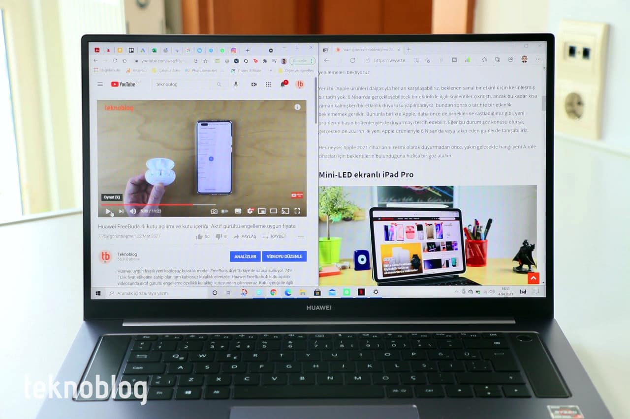 Ekranın 16:9 görüntü oranına sahip olması MateBook D16’yı özellikle multimedya içerik tüketimi için elverişli hâle getiriyor. Genel olarak 16:9 formatında olan YouTube videolarını görüntü alanından ödün vermeden izleyebilirsiniz. Daha geniş formatlı videolarda da bu ekran iyi iş çıkarıyor. Bunun yanı sıra aynı anda iki uygulama penceresi açmak isteyenler için genişlik bakımında yeterli sayılır. Ekran çok üst düzeyde olmasa da, ihtiyaçları fazlasıyla karşılıyor.