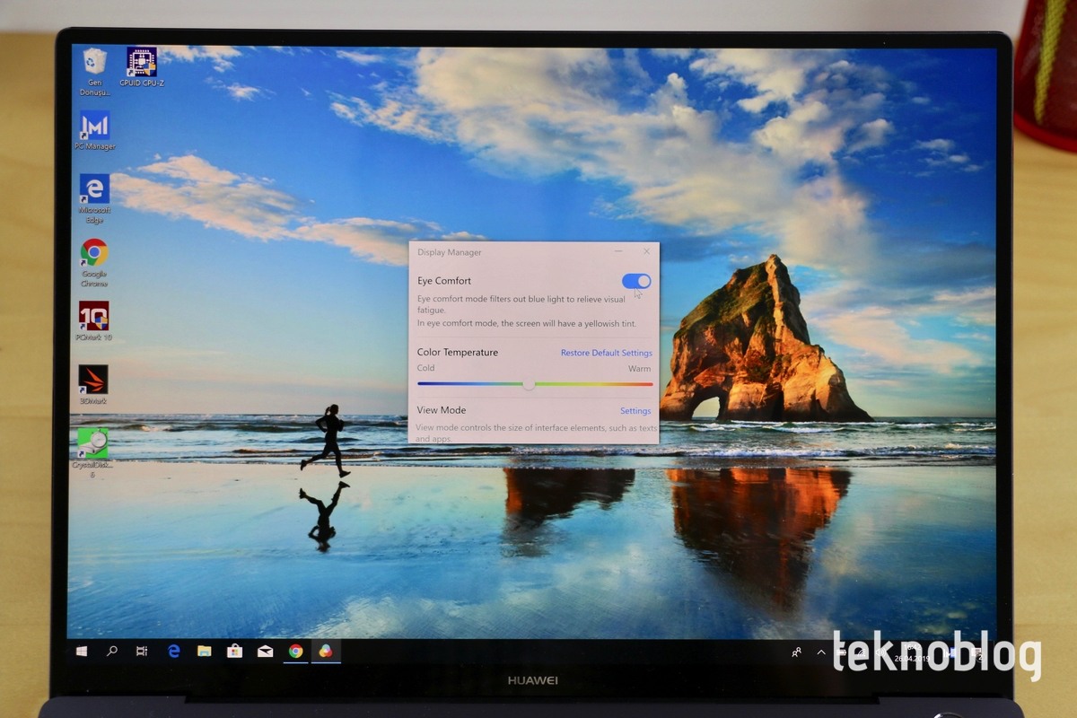 Huawei, Display Manager adı verilen özel bir yazılımı ön yüklü olarak sunuyor. Bu yazılım sayesinde ekranın renk sıcaklığını gözünüzün en rahat edeceği biçimde ayarlayabilirsiniz. Bunun yanı sıra mavi ışığı filtreleyerek görsel yorgunluğun önüne geçmeyi sağlayan Eye Comfort özelliğini de bu yazılım üzerinden hızlı biçimde açabilirsiniz. Aslında aynı ayar Windows 10’da da dahili olarak bulunuyor. Ne var ki, Eye Comfort’ı kullanmak daha pratik görünüyor.