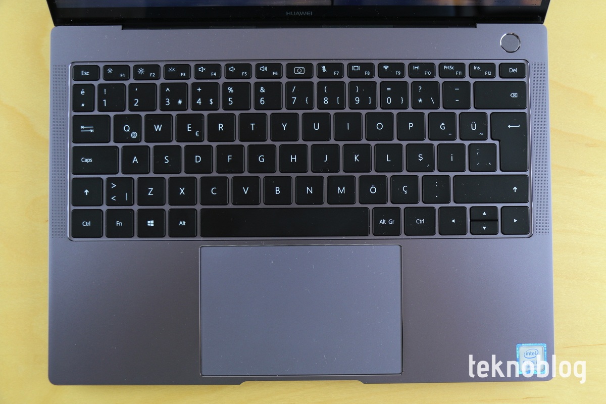 Huawei MateBook X Pro’nun tam boyutlu klavyesinin tuşları sıvı dökülmelerine karşı dayanıklı olmasıyla dikkat çekiyor. Aynı zamanda tuşlar arka aydınlatmalı, böylelikle karanlık ortamlarda da daha rahat yazı yazma imkanı bulunuyor. Tuşların yüzey alanları gayet yeterli, aynı zamanda derinlikleri de oldukça iyi seviyede. Böylelikle hızlı biçimde rahatlıkla yazı yazabilirsiniz. Klavyenin sağ üst köşesinde güç butonu var. Bu güç butonu aynı zamanda parmak izi okuyucusu da barındırıyor. Böylelikle kilitli ekranı parmak izinizle hızlı şekilde açabilirsiniz. Parmak izi oldukça hızlı çalışıyor.