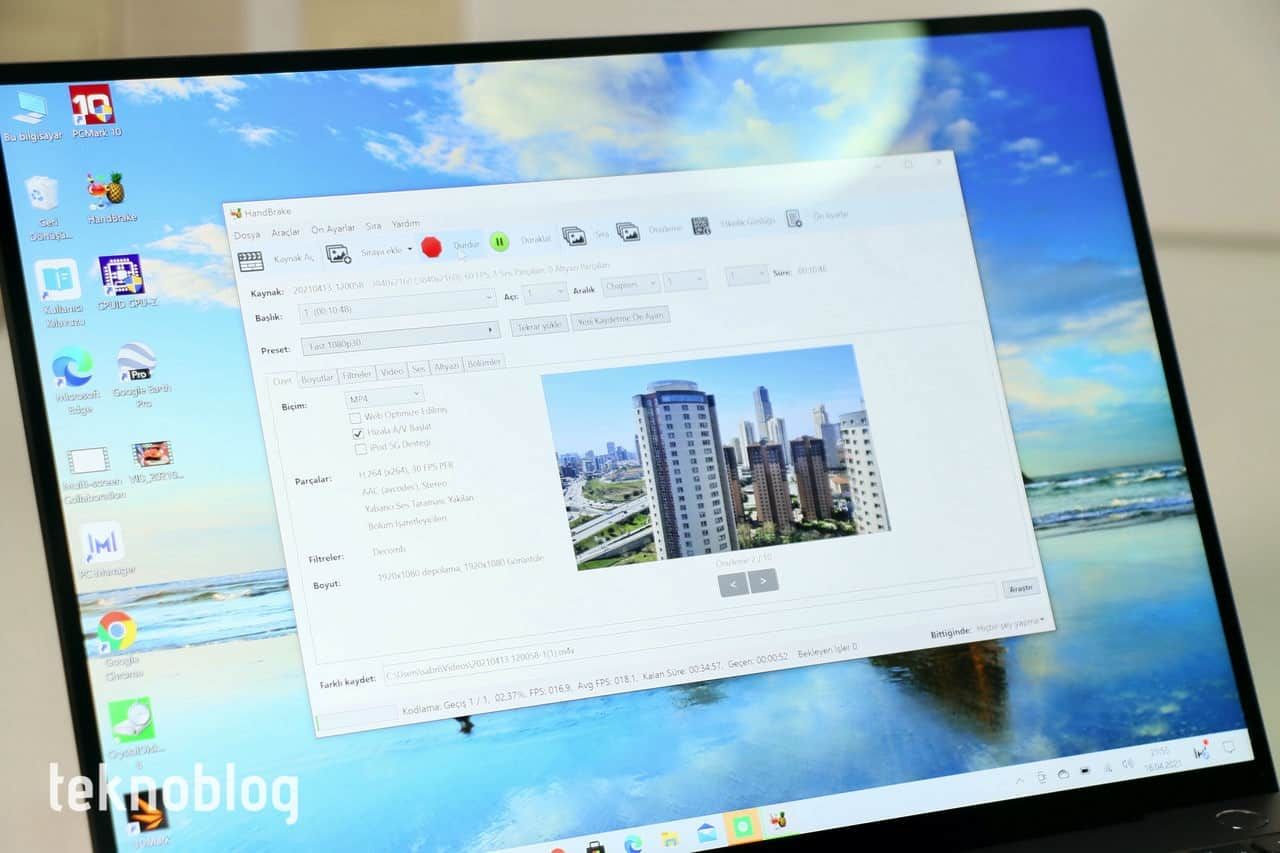 Benchmark testlerine baktığımız zaman, Huawei MateBook X Pro 2021 modelinin 11. nesil Intel Core i7-1165G7 işlemci taşıyan diğer modellerle benzer seviyelerde sonuçlar verdiğini görüyoruz. Buna ek olarak geçen yılın MateBook X Pro 2020 modeliyle karşılaştırıldığı zaman da aradaki fark biraz daha belirgin hâle geliyor. Yeni model, selefine göre PC Mark 10’da hatırı sayılır bir fark ortaya koyuyor. Handbrake ile gerçekleştirdiğimiz, 10 dakika uzunluğundaki bir 4K videonun 1080p’ye dönüştürülmesi işlemi 2021 model MateBook X Pro’da 30 dakikada tamamlanırken, bu süre 2020 model üründe ise bir saat oluyor. Aşağıda, farklı benchmark test araçlarıyla elde ettiğimiz sonuçları görebilirsiniz.