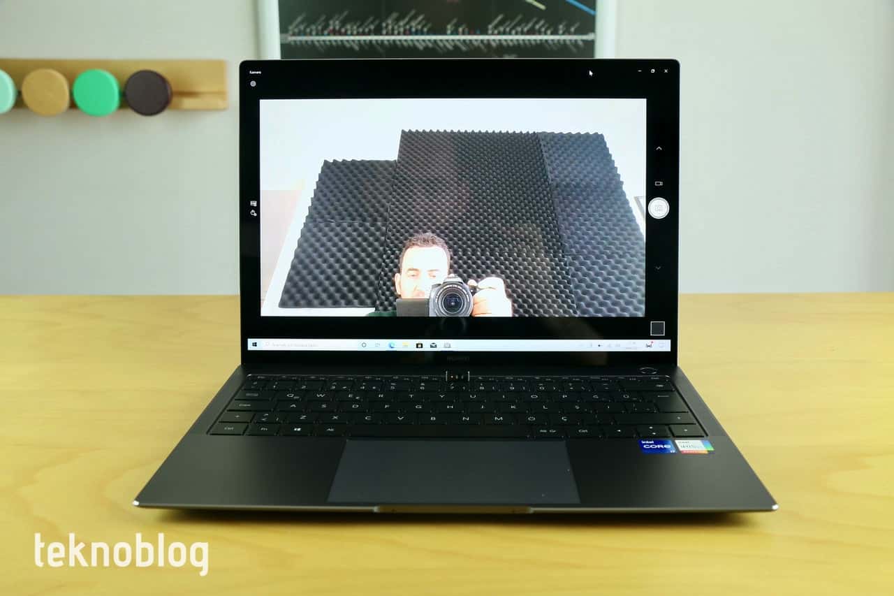 Huawei’nin web kamerası yaklaşımı ile ilgili olarak insanlar farklı görüşlere sahip. Öncelikle işe, insanların son zamanlarda giderek daha fazla hassasiyet gösterdiği gizlilik ve güvenlik açısından bakarsak, bu web kamerası kullanılmadığı zamanlarda fiziksel olarak kolaylıkla kapatılıyor ve sizi kimsenin uzaktan izlemesi mümkün olmuyor. Bu açıdan çok ideal bir çözüm olduğunu söyleyebiliriz. Sunduğu görüş açısı ise, standart bir web kamerasınınkinden farklı. Ekranın üstüne yerleştirilen web kameraları biraz daha insanı karşıdan gören bir görüş açısı sunarken, MateBook X Pro 2021’in web kamerası aşağı yerleştirildiği için, karşı tarafa sanki tepeden bakıyormuşsunuz gibi bir izlenim oluşuyor. Aslına bakarsanız, Huawei sunduğu geniş görüş açısıyla bu etkinin azalmasını sağlıyor, yine de kameranın konumu bunu belirli bir yerde sınırlıyor. Arzu ederseniz, dizüstü bilgisayarın tabanına bir nesne koyarak taban açısını değiştirebilir ve kameranın görüş açısında bu şekilde fiziksel oynamalar yapabilirsiniz.