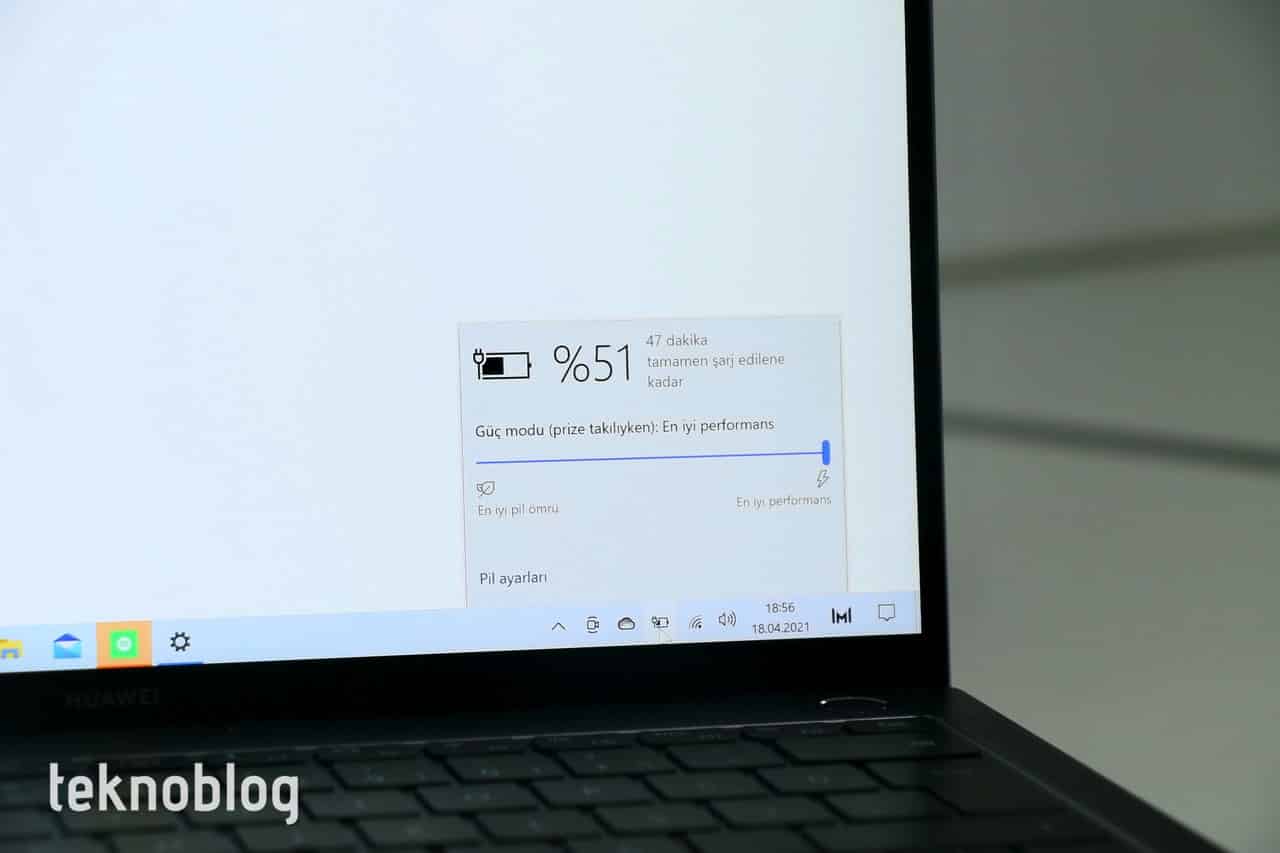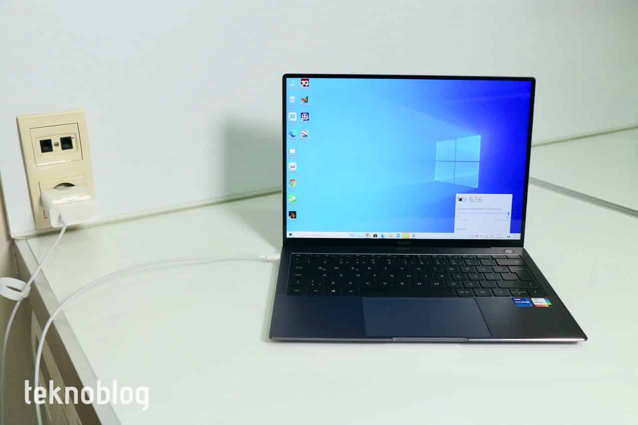MateBook X Pro 2021’de geçen yılın modelinde olduğu gibi 56 Wh kapasiteli pil bulunuyor. Huawei’nin belirttiğine göre bu pil; basit işlemlerde 11 saate kadar çalışma imkanı sunuyor. 10 saat web’de gezinme ve 10 saat 1080p video izleme de verilen diğer pil değerleri arasında bulunuyor. Pratikteki deneyimlerimiz Huawei MateBook X Pro 2021’in güçlü bir performans ortaya koyduğunu gösteriyor. Ekran parlaklığı yüzde 60 seviyesindeyken, normal yoğunluklu bir kullanımda tek bir şarjla 7-8 saat arası bir çalışma süresine ulaşmak mümkün oluyor. Yani tek bir şarjla sabahtan akşama bir günü çıkarmak büyük olasılıkla mümkün olacaktır.