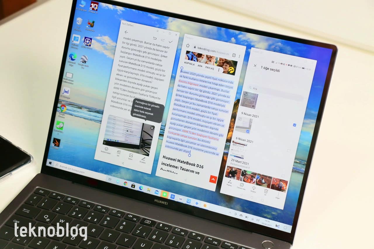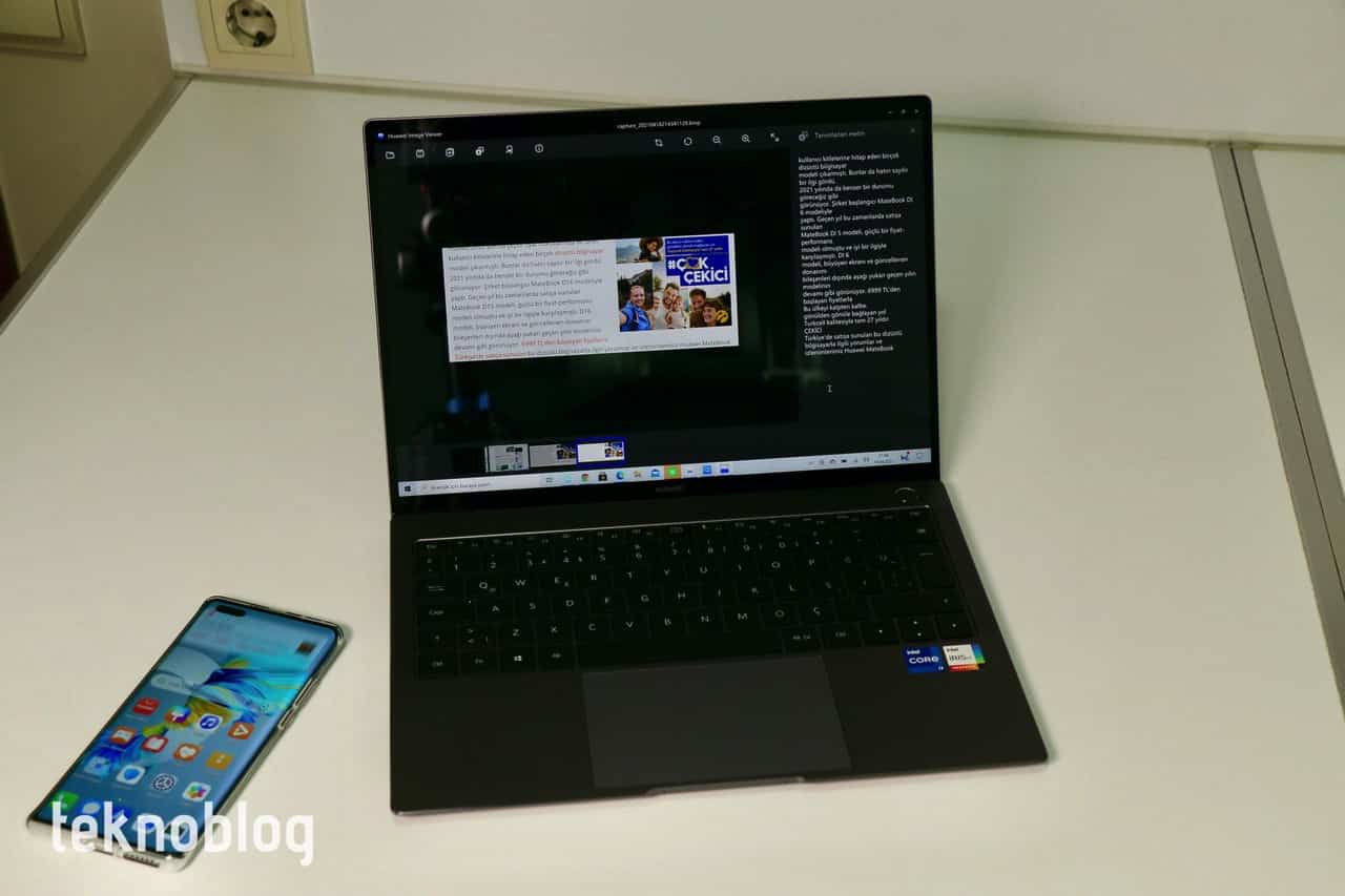 Geçen yıl yayınladığımız Huawei dizüstü bilgisayar incelemelerinden, Huawei’nin mobil cihazları ve dizüstü bilgisayarları arasındaki ortak çalışma imkanlarını biliyor olmalısınız. Akıllı telefonun ekranını ve sesini dizüstü bilgisayara yansıtma, fotoğraf ve videoları PC Manager üzerinden yedekleme gibi işlemleri MateBook X Pro 2021’de de gerçekleştirebilirsiniz. Bununla birlikte Huawei Share desteği sayesinde kolay dosya paylaşımı veya kopyalama panosunun paylaşımı gibi imkanlar da mevcut.