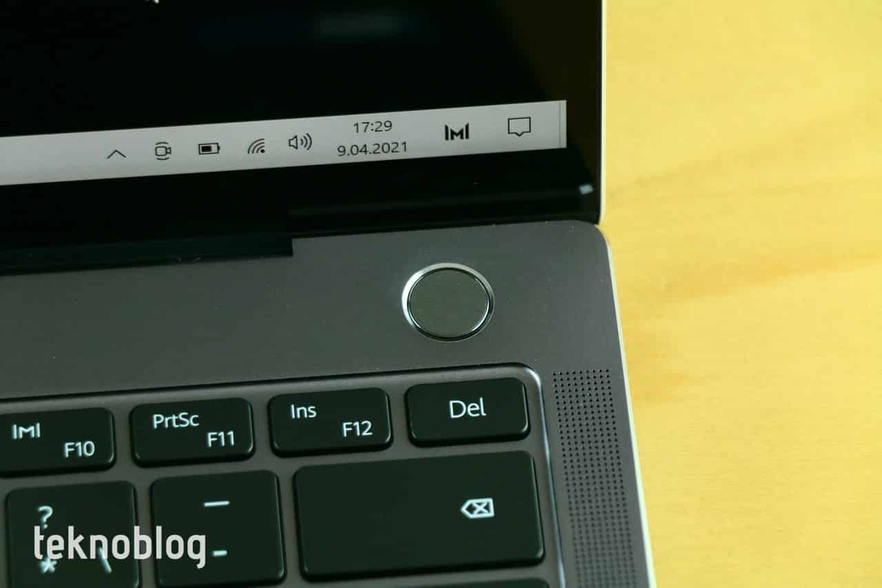 Tıpkı klavyeye yerleştirilmiş web kamerası gibi, sağ üst köşede bulunan parmak izi okuyuculu güç düğmesi de Huawei dizüstü bilgisayarlarının simgeleri arasında yer alıyor. Öncelikle bu tuşun çok pratik bir konumda bulunduğunu söylememiz gerekiyor. Bazı dizüstü bilgisayarlarda güç düğmesi klavyeye entegre ediliyor, görünüşü de diğer tuşlardan farklı olmadığı için bilgisayarı açmak için güç düğmesini aramak gerekiyor. Ne var ki, MateBook X Pro’da güç düğmesi sağ üst bölümde açık biçimde görülüyor. Güç düğmesine entegre edilmiş olan parmak izi okuyucusu ise oldukça hızlı ve isabetli biçimde çalışıyor. İlk kurulum esnasında parmak izinizi ekleyebilirsiniz. Sadece sağ el işaret parmağınızı tanıtmanız yeterli olacaktır. Sonrasında Windows Hello aracılığıyla ekran kilidini hızlı biçimde geçebilirsiniz.