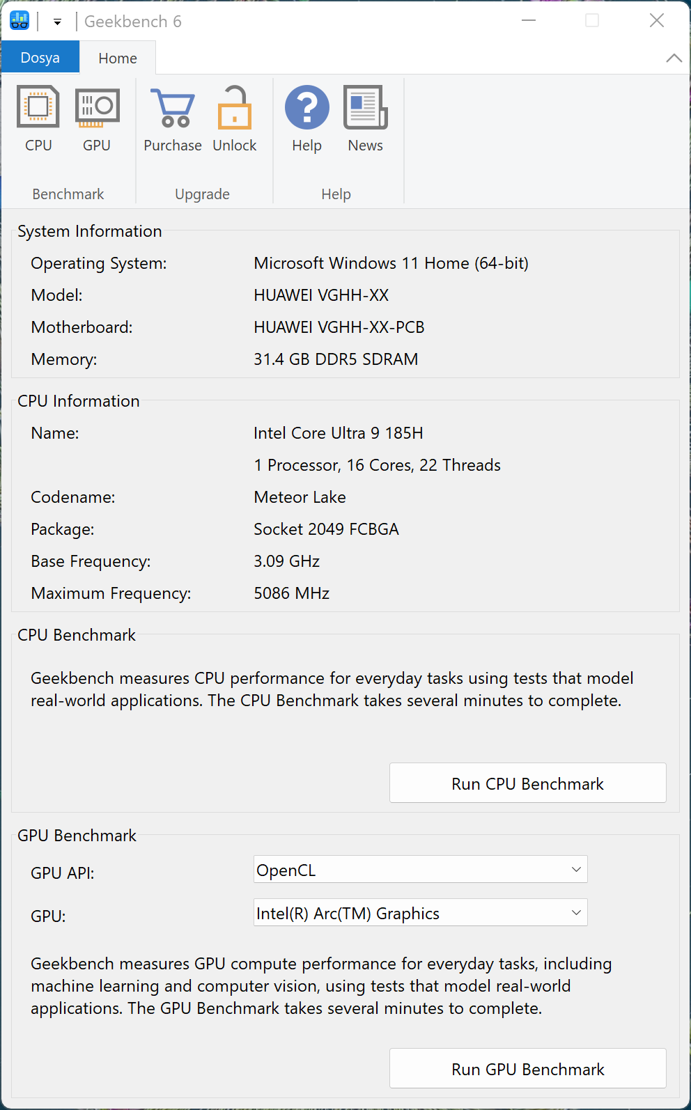 Huawei MateBook X Pro 2024, ince ve hafif gövdesinde Intel Core Ultra 9 işlemcinin gücünü sunuyor. Elimizdeki konfigürasyonda 2 TB RAM ve 32 GB SSD de bu işlemciye eşlik ediyor. Dahili Intel Arc grafik işlemci birimi mevcut. Geçen yıl incelediğimiz MateBook X Pro 2023 modelinde 12. Nesil Intel Core i7 işlemci mevcuttu. 3DMark, PCMark10, GeekBench 6 gibi benchmark araçlarıyla yaptığımız testlerde, tek ve çok çekirdek puanlarında dikkate değer ilerlemeler var, ancak esas farkı grafik performansı tarafında gördük. Geçen yılın modeliyle arada büyük grafik performans puan farkları var. Bu durum MateBook X Pro 2024’ün, boş zamanlarınızda çeşitli oyun ihtiyaçlarınıza da belli bir yere kadar cevap verebileceğini gösteriyor. Özellikle PC Yöneticisi uygulaması içinde bulunan Performans modunu açarak, 40W TDP seviyesine çıkabilir ve Core Ultra 9’dan mümkün olan en yüksek performansı alabilirsiniz. Pil tüketimini gözetmek isterseniz, bu durumda Dengeli ayarını tercih edebilirsiniz. Bu arada, Performans modunu sadece cihazı prize takılı hâldeyken değil, pile bağlı şekilde de kullanmak mümkün oluyor.