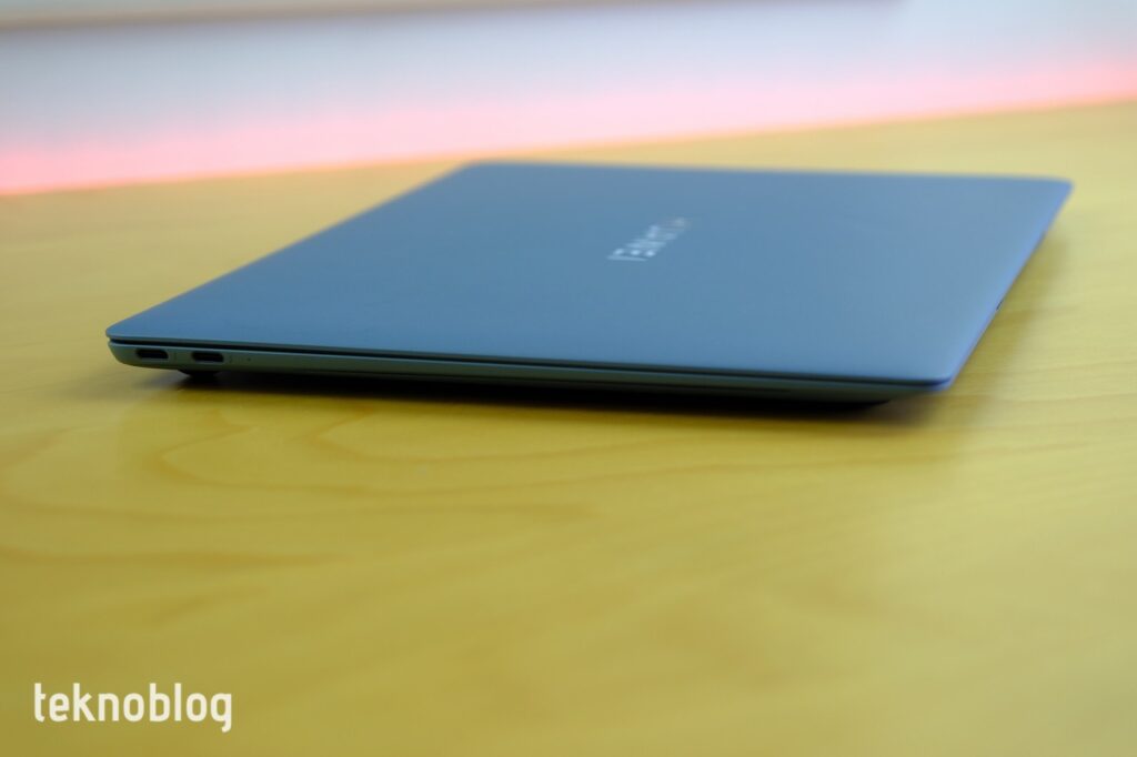 Port seçenekleri bakımından da bu dizüstü bilgisayar günümüzün ihtiyaçlarını karşılıyor. Sol kenarda iki adet USB-C biçimli Thunderbolt 4 portu var. Bunlar 40 Gbps’ye varan hızlarda veri transferini desteklemekle birlikte, harici monitörlere yüksek kalitede görüntü aktarımı da yapabiliyor. Sağ kenarda da USB-C biçimli bir port daha var. Bunu da veri transferi için kullanabilirsiniz. Üç portu da şarj için kullanmanız mümkün, ancak sağ kenardaki tek port üzerinden şarjın biraz daha hızlı olduğu izlenimini elde ettik. Bu nedenle size de tavsiyemiz, şarj işlemini genellikle o port üzerinden gerçekleştirmeniz olacaktır.