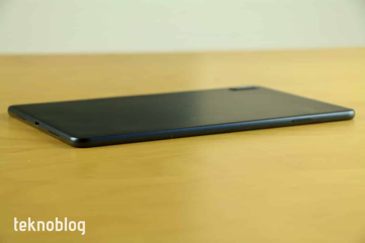 MatePad 10.4’ün üst kenarında iki adet hoparlör ızgarası ve güç butonu yer alıyor. Sol kenarda sadece tabletin microSD kart tepsisinin yerleştirildiği yuva bulunuyor. Sağ kenarın üst kısmına ise ses kontrol tuşları yerleştirilmiş. Ses kontrol tuşlarının altında ise yine MatePad Pro’da olduğu gibi dört adet mikrofon bulunuyor.