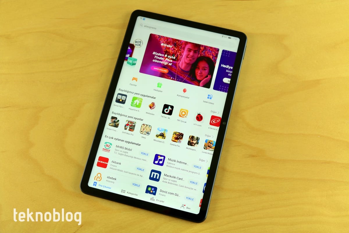 Huawei MatePad 10.4’de daha önce belirttiğimiz gibi Google’ın mobil servisleri bulunmuyor. Bu nedenle cihazdan Google Play’e erişmek de mümkün olmuyor. Uygulama indirmek için Huawei’nin uygulama mağazası AppGallery’nin yanı sıra APKPure gibi yan çözümlerden faydalanılıyor.