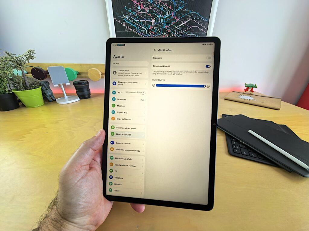 PaperMatte ekranın bir diğer avantajı da sunduğu doğal his oluyor. Dokusu, gerçek bir kâğıt yüzeyini anımsatıyor. Bu his, uzun süreli okumaları ve yazıları daha keyifli hâle getiriyor. Özellikle ders çalışan veya not alan kullanıcılar için bu büyük bir artı olacaktır. Bunun yanında gözleri yormayan yapısı, uzun kullanımda konfor sağlayacaktır. Düşük mavi ışık sertifikaları da bu noktada öne çıkıyor. Göz sağlığını koruyan bu yapı, ekrana bakmayı daha güvenli hale getiriyor. Böylece yalnızca kaliteli görüntü değil, aynı zamanda sağlıklı bir deneyim de elde edebilirsiniz. İşte tam da bu yüzden Huawei’nin ekran teknolojisi farklı bir yerde duruyor.