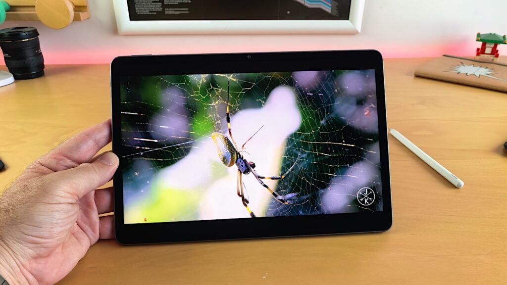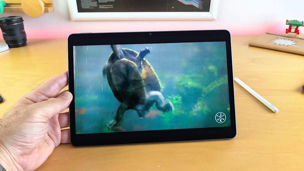 Ekranın etrafındaki çerçeveler eşit ve ince tutulmuş. Bu denge, göze hoş geliyor ve ekrana odaklanmayı kolaylaştırıyor. İster yatay ister dikey tutun, görüntü alanı dengeli görünüyor. Ayrıca anten boşluklarının gövdeye gizlenmiş olması tasarımı daha temiz gösteriyor. Küçük gibi görünen bu detaylar kullanımda fark yaratıyor. Tableti elinize aldığınızda sadelik ve düzen hissi anında fark ediliyor.