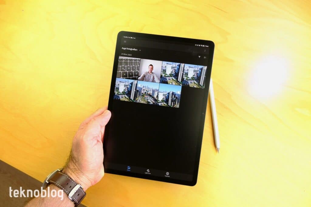 Arkada yer alan 13 megapiksel kamera, tabletin genel olarak kullanılacağını düşündüğümüz belge tarama gibi işler için fazlasıyla yeterli olacaktır. Bunun dışında, ışık koşullarının iyi olduğu ortamlarda fotoğraf ve video çekimi yapmak istediğinizde iş görecektir. Tabletin arka kamerasıyla 4K video kaydı da yapabiliyorsunuz. Bir tablet için tatmin edici bir video performansı var. Tableti sabit biçimde tutmak kolay değil, bu nedenle videoda titreşimler olacaktır, ancak yazılımla bunun etkisi azaltılmaya çalışıyor. Ses kayıt kalitesi de iyi. 8 megapiksel ön kamera öncelikle görüntülü görüşmeler için düşünülmüş. Bununla birlikte selfie fotoğraflar için de performansı iyi. Pozlama yüksek, bu da kapalı alanlarda daha parlak çekimlere izin veriyor. Öte yandan geniş görüş açısı görüntülü görüşmelerde karşı tarafta daha iyi görünmenizi sağlayacaktır. Kamera uygulaması ise bir tablette rahat kullanılacak biçimde düzenlenmiş. Düğmeler, mod değişimi, hızlı kontroller sağ veya sol el baş parmaklarıyla rahatlıkla kontrol edilebilecek noktalarda bulunuyor.