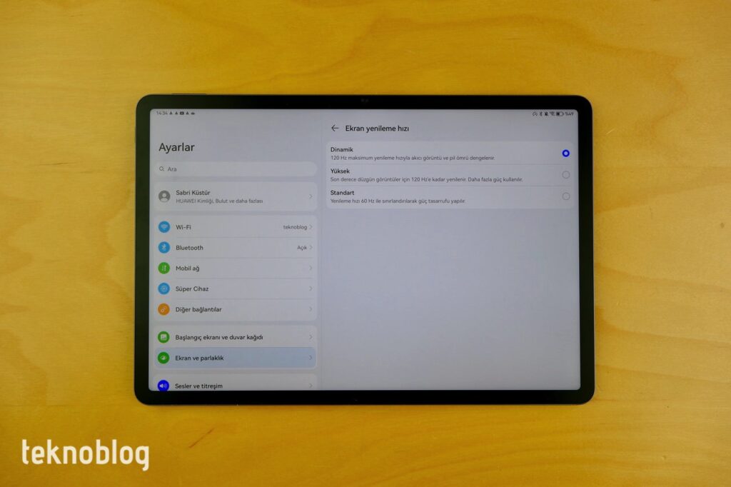 Ekranın 120 Hz yenileme hızı özellikle kullanıcı arayüzünde geçişlerde ve web sayfalarında kaydırmalarda daha akıcı ve doğal bir görünüm elde etmeyi sağlıyor. Oyunlarda da gerçekçilik anlamında katkısı olacaktır. Ancak bu tabletin hitap ettiği kitle için 120 Hz’in çok büyük fark yaratacağını düşünmüyoruz. Bunu varsayılan olarak Dinamik ayarda bırakabilir veya pil ömrünü düşünerek standart 60 Hz değerine indirebilirsiniz.