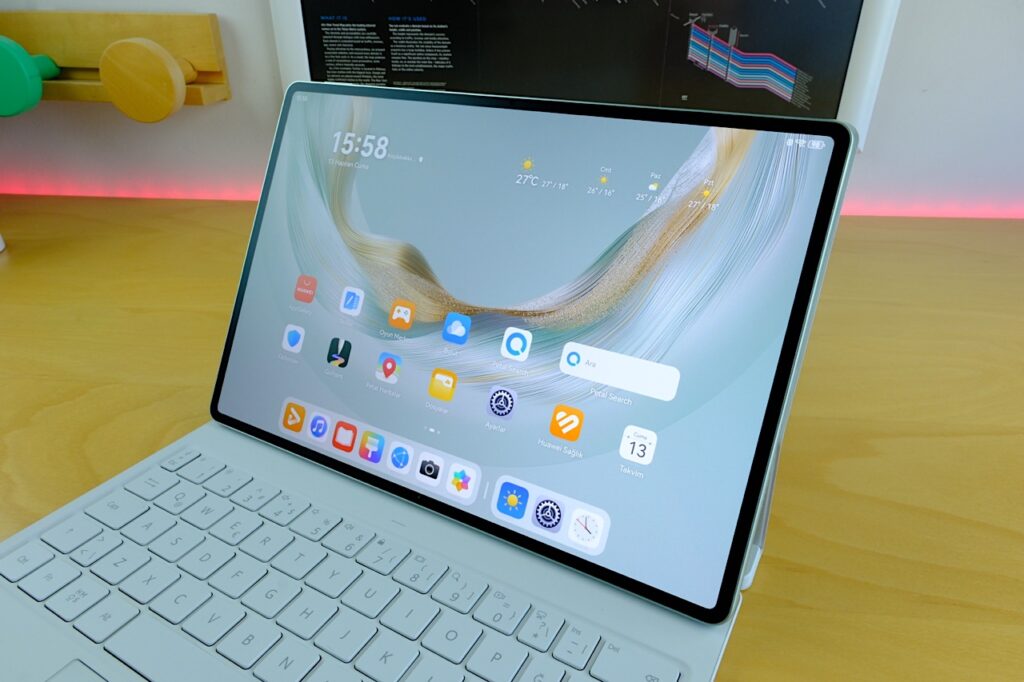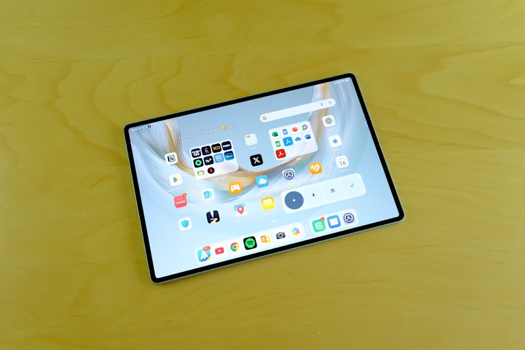 Tüm bu tasarım detaylarını bir araya getirdiğimizde, Huawei’nin yalnızca görselliğe odaklanmadığını, aynı zamanda kullanıcının günlük alışkanlıklarını da gözettiğini söyleyebiliriz. Tabletin hafifliği, tek elle uzun süre rahatlıkla tutulabilmesini sağlıyor, özellikle hareket hâlindeyken, metroda ya da bir kafede çalışırken bu fark net şekilde hissediliyor. Bunun yanında, yüzeydeki dokular ve gövde yapısı, cihazın çantaya atıldığında çizilme veya darbe alma ihtimalini de azaltıyor. Üstelik kenar ve köşelerdeki yuvarlatılmış hatlar, tableti kavrarken elin hiçbir yerinde keskin bir his oluşmamasını garanti ediyor. MatePad Pro 12.2 gündelik hayatta rahat kullanım düşünülerek tasarlanmış bir cihaz olduğunu her yönüyle gösteriyor.