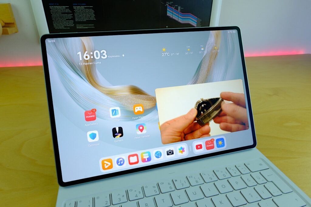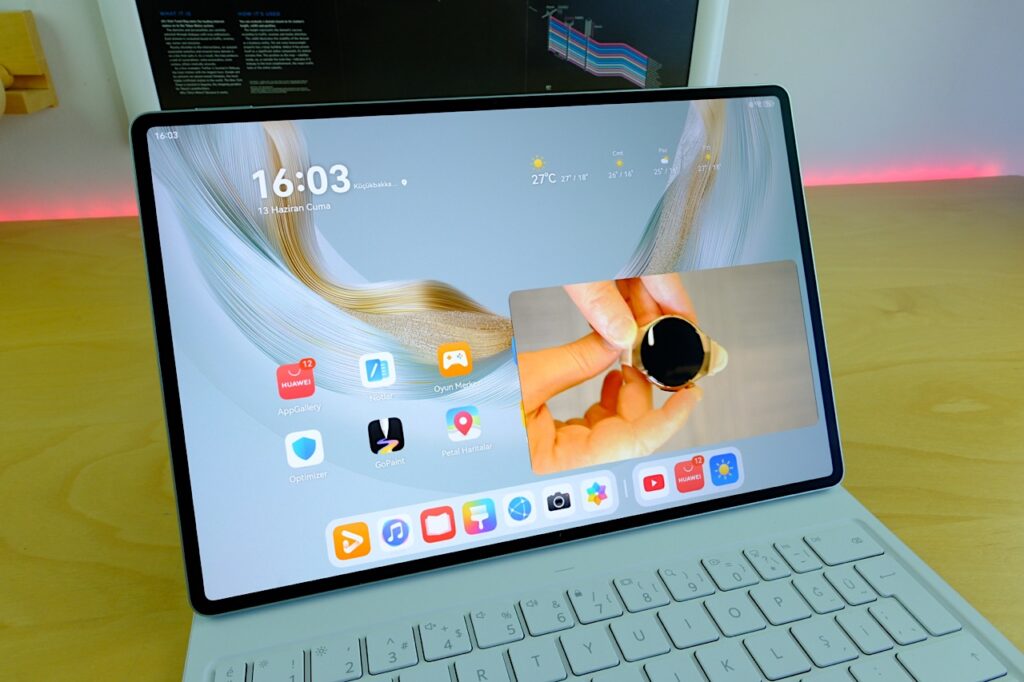Cihazın en dikkat çeken yanlarından biri, yoğun kullanım senaryolarında bile sabit kalan performans çizgisi. Örneğin aynı anda hem GoPaint uygulamasında çalışıp hem de video düzenlerken cihazda herhangi bir takılma ya da yavaşlama görülmüyor. Uygulamalar arası geçişler hızlı, sistem yanıt süreleri düşük ve bu da size sürekli bir akıcılık hissi veriyor. Ne var ki bu performans yalnızca işlemciyle açıklanamaz, yazılım optimizasyonu ve bellek yönetimi de burada kilit rol oynuyor. Huawei’nin HarmonyOS üzerinde yaptığı iyileştirmeler, kaynak kullanımında ciddi bir denge sağlıyor.