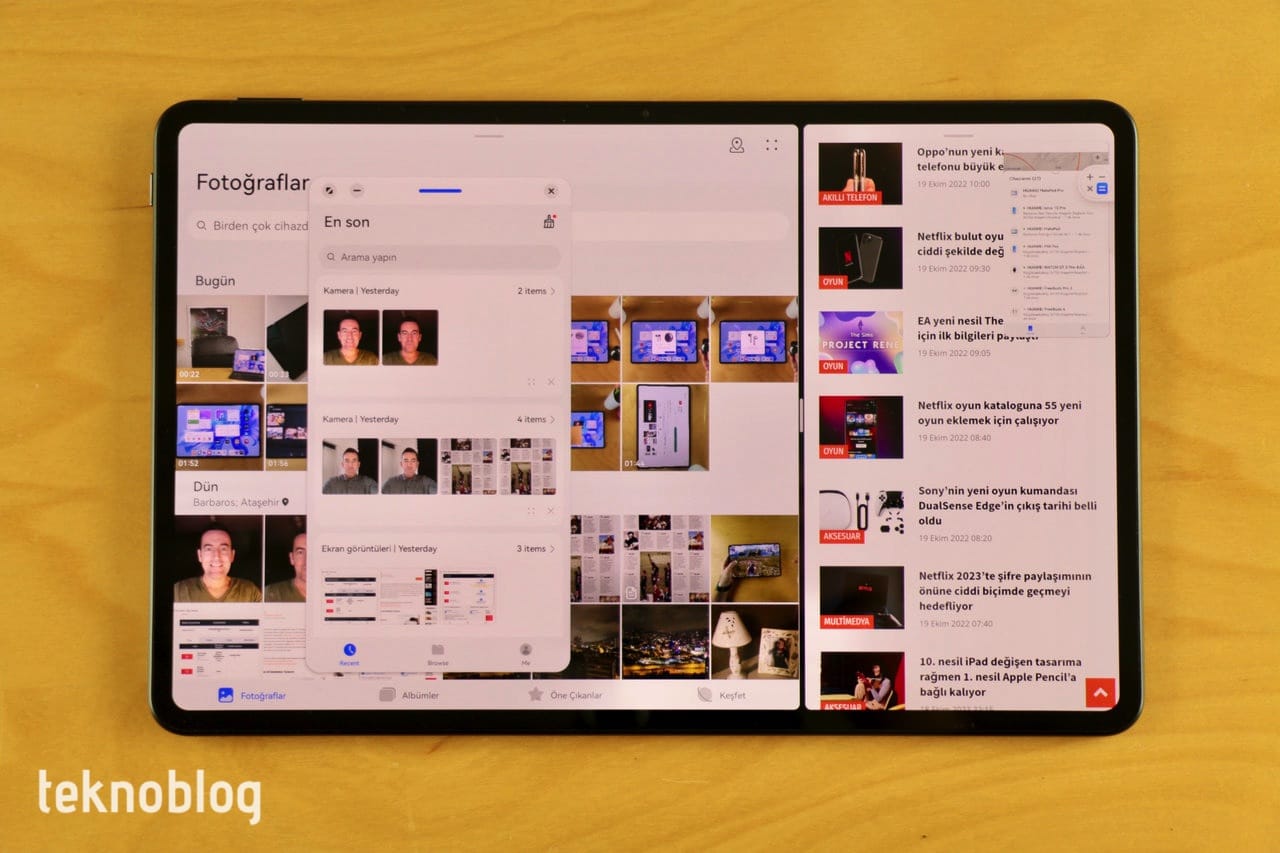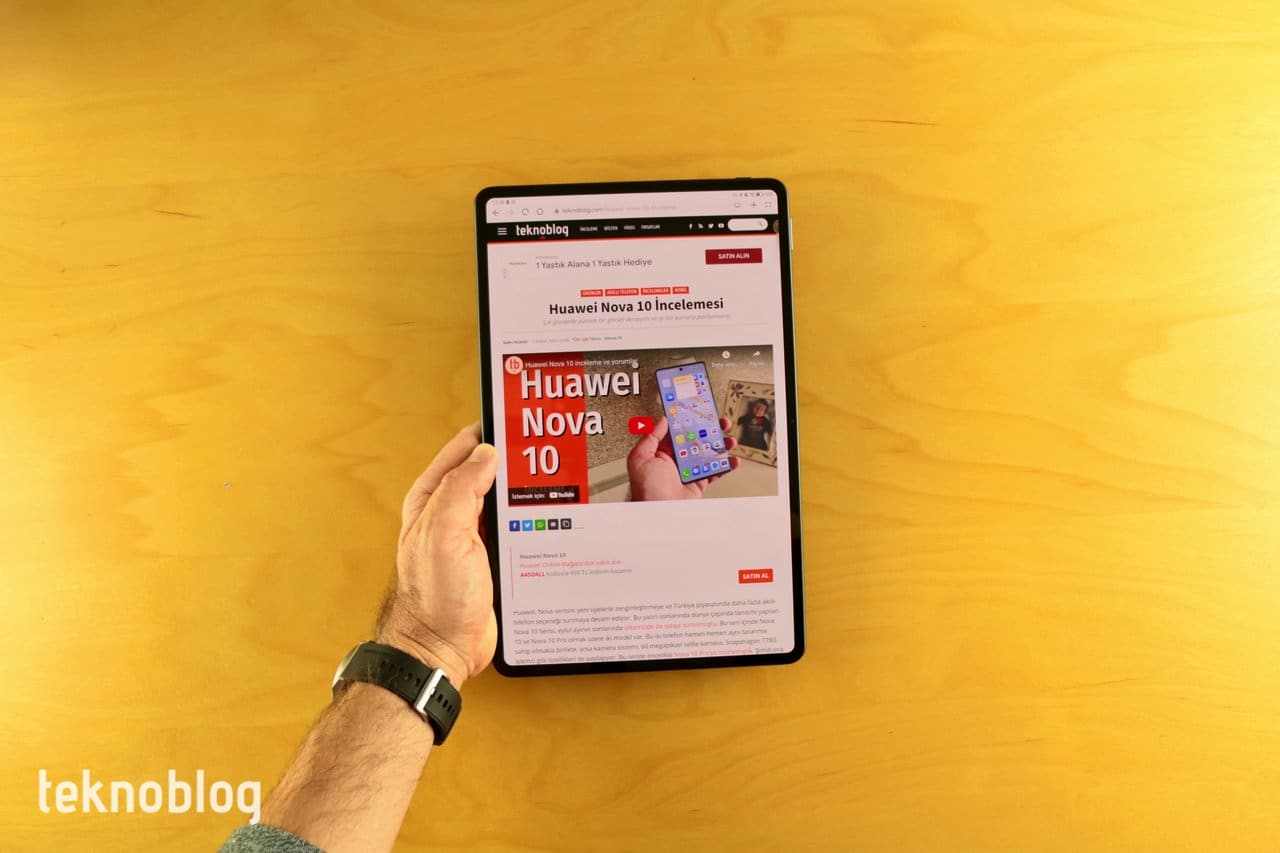MatePad Pro 12.6’nın büyük, parlak ve canlı renkler sunan ekranında video izlemek fazlasıyla keyifli. Netflix veya Disney+ gibi platformlardaki film ve dizileri de bu tablette büyük bir keyifle izleyebilirsiniz. İnternette gezinme konusunda bir dizüstü bilgisayarda gördüğümüz deneyimi de sunuyor. Aynı anda birden fazla uygulamayı kullanmayı sevenler için de ekran, yeterli görüntüleme ve kullanım alanını sağlıyor.
