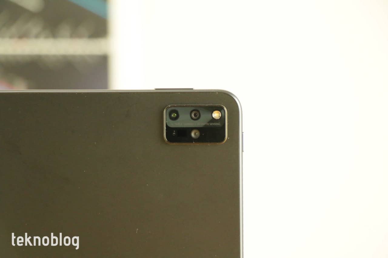 Tabletlerde kameraların özelliklerine pek bakılmaz, bunlar biraz daha arka plandadır. Ancak Huawei diğer alanlarda olduğu gibi burada da boş geçmemiş. Arkada üç tane kamera var. 13 megapiksel ana kamera, f/1.8 diyafram ve faz algılamalı otomatik odak özelliklerine sahip. Bunun yanında 8 megapiksel, f/2.4 ultra geniş açılı kamera ve ToF, yani Uçuş Süresi kamerası var. Bu sonuncusu, çekeceğiniz Portre fotoğraflarda arka plan bulanıklığı efektinin iyi biçimde verilmesini sağlarken, tabletle mesafe veya uzunluk ölçümlerinde veya çeşitli artırılmış gerçeklik uygulamalarını verimli şekilde kullanmada yardımcı olacaktır.