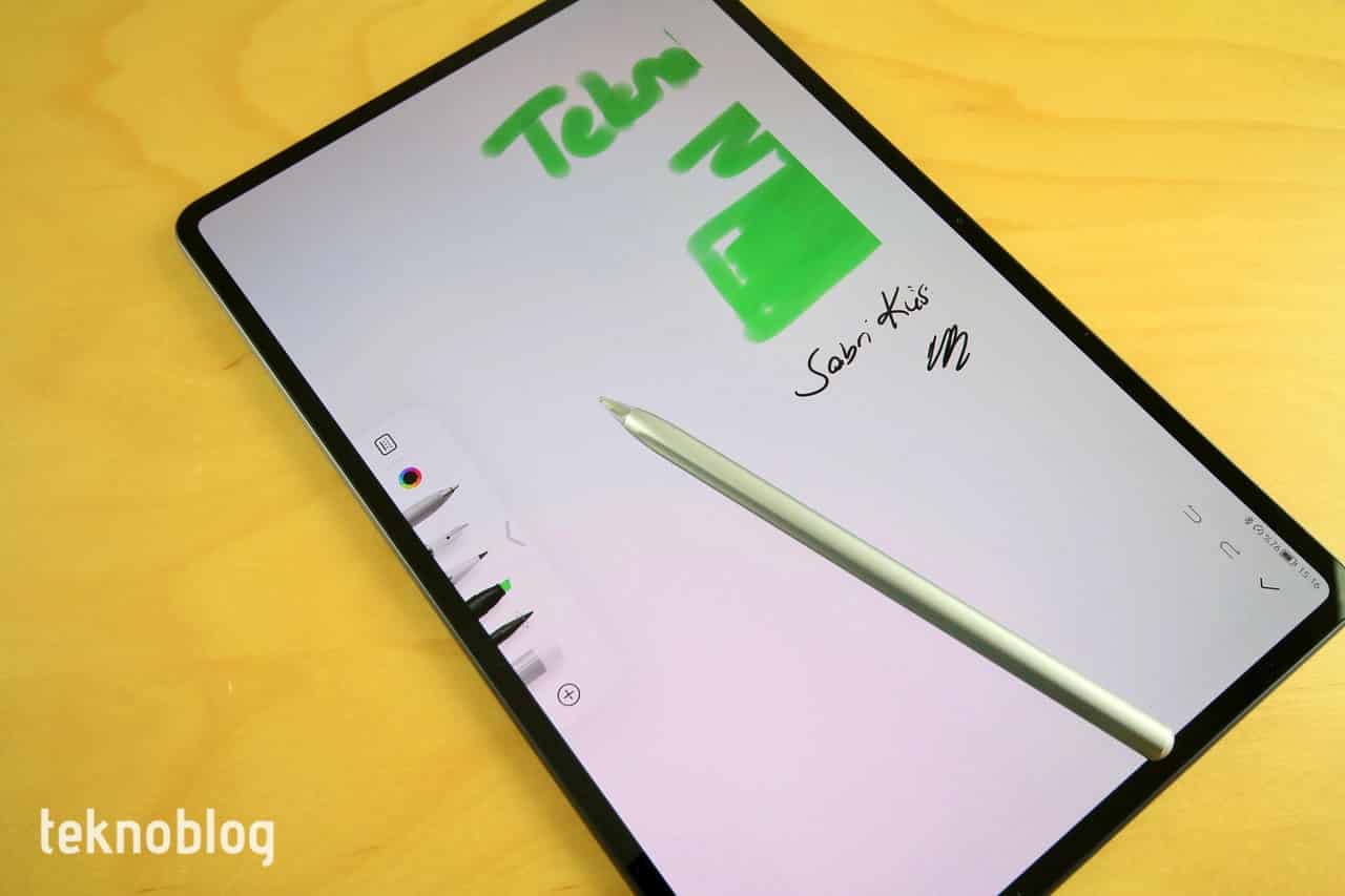 MatePad Pro 12.6’nın büyük ekranında M-Pencil, klasik bir kağıt-kalem deneyimini aratmayacak biçimde yazı yazma veya çizim yapma deneyimini sunuyor. Yazı yazarken avucunuzu ekrana rahatlıkla temas ettirebilirsiniz, bu durum yanlış bir komuta neden olmayacaktır. FreeScript desteği var, ekranda yazdığınız yazılar otomatik olarak metne çevriliyor. İngilizce dil desteği ile sınırlı olsa da, özellikle uygulamaları arayıp açarken sıklıkla kullandığımızı belirtelim. Zen Brush 3, Concepts, ibis Paint X, Tayasui Sketch, Medibang Paint gibi uygulamaları M-Pencil ile verimli biçimde kullanabilir; çizim veya diğer çalışmalarınızı rahatlıkla gerçekleştirebilirsiniz.