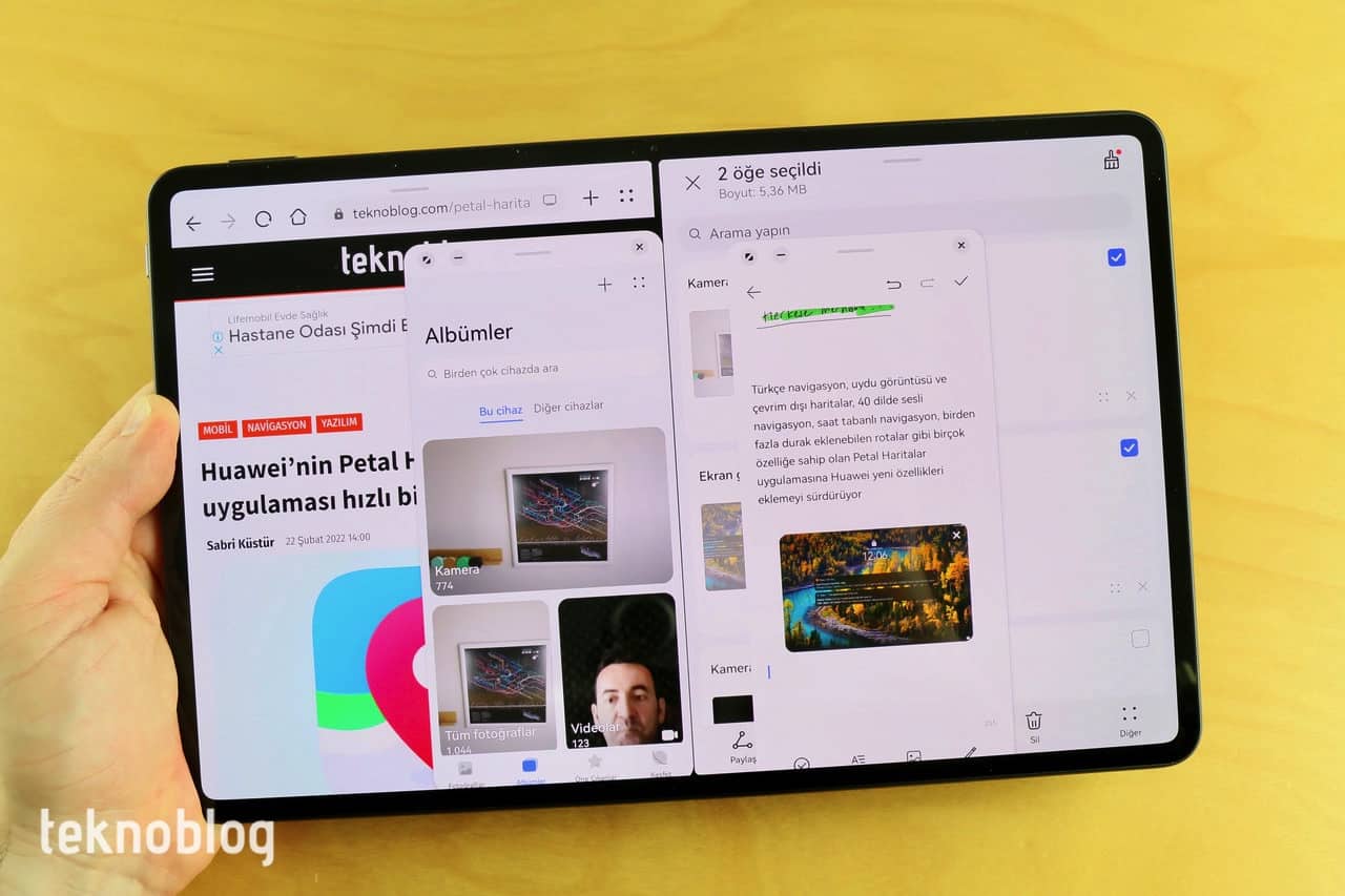 Çoklu görev konusunda da büyük ekran iyi bir deneyim sağlıyor. Aynı anda birden fazla uygulamayı verimli biçimde kullanabilir, içerik veya metin taşıma işlemlerini sürükle-bırak aracılığıyla rahatlıkla yapabilirsiniz. Tek bir ekranda aynı anda dört uygulamayı açabilirsiniz. Kayan pencere uygulama baloncuğu ise 10’a kadar uygulamayı tutabiliyor.