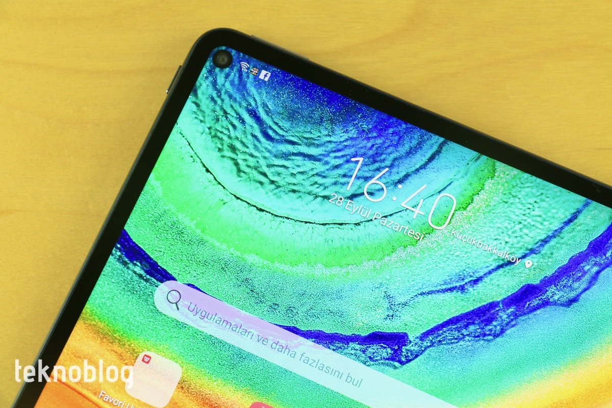Huawei MatePad Pro’nun ekranının görüntüleme açıları konusunda da başarılı bir iş çıkardığı söylenebilir. Ön kameranın ekranın üzerindeki deliğe yerleştirilmesi bütünlüğü bozan bir tercih gibi görünse de, bunun biraz da zorunluluk olduğunu söylemek gerekiyor. Parmak izi tarayıcısı bulunmayan tablette biyometrik güvenlik için sadece yüz tanıma özelliği kullanılıyor. Dolayısıyla kamera selfie çekmek ve video sohbet dışında önemli bir görev de üstleniyor.