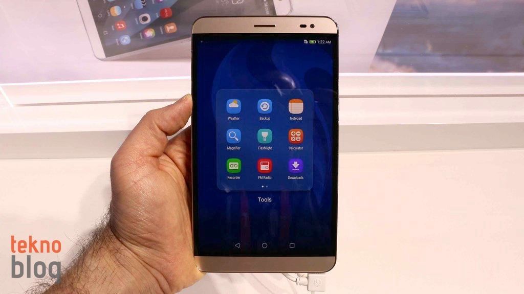 MediaPad X2’nin 7 inç LTPS LCD kapasitif dokunmatik ekranı 1920 x 1200 piksel ile yeterli keskinliği sunuyor. Çektiğimiz fotoğraflarda ekran biraz soluk görünebilir, ancak ona fazla takılmayın. Huawei stand yetkilileri MediaPad X2’yi parlak ışık altına yerleştirdiği için böyle görünüyor. Normal şartlar altında bu ekran yeterli görüşü sunuyor. Huawei’nin sekiz çekirdekli Hilisilicon Kirin 930 işlemcisi işini yapıyor gibi görünüyor. MediaPad X2’nin 16 GB dahili hafıza/2 GB RAM ve 32 GB dahili hafıza / 3 GB RAM gibi iki seçeneği bulunuyor. microSD kart yuvası da 128 GB’ye kadar kapasiteye sahip kartları destekliyor.