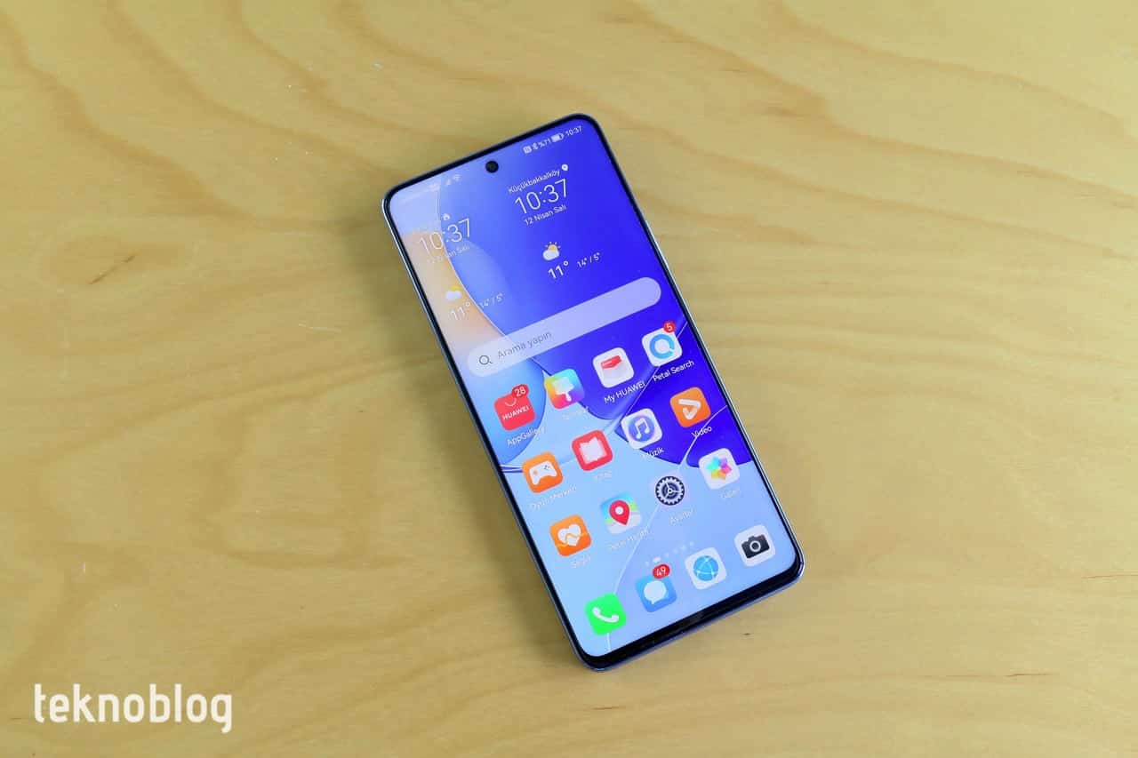 Huawei Nova 9 SE’de 6.78 inçlik köşeden köşeye uzunluğa sahip bir ekran bulunuyor. Bu, Nova 9’dakinden biraz daha büyük boyutlu bir ekran bulunduğu anlamına geliyor. Ayrıca o telefonda gördüğümüz, kenarlara doğru kavisli ekran SE modelinde bulunmuyor. Bunun yerine karşımızda düz bir ekran var. İpince ekran çerçevesiyle yine yüksek bir ekran-gövde oranı yakalanmış. Ekranın üst kısmında, ortalanmış biçimde bir kamera deliği var. Bunun ekranda fazla yer işgal etmediğini söyleyebiliriz. Deneyim açısından da herhangi bir sıkıntı yaratmıyor.