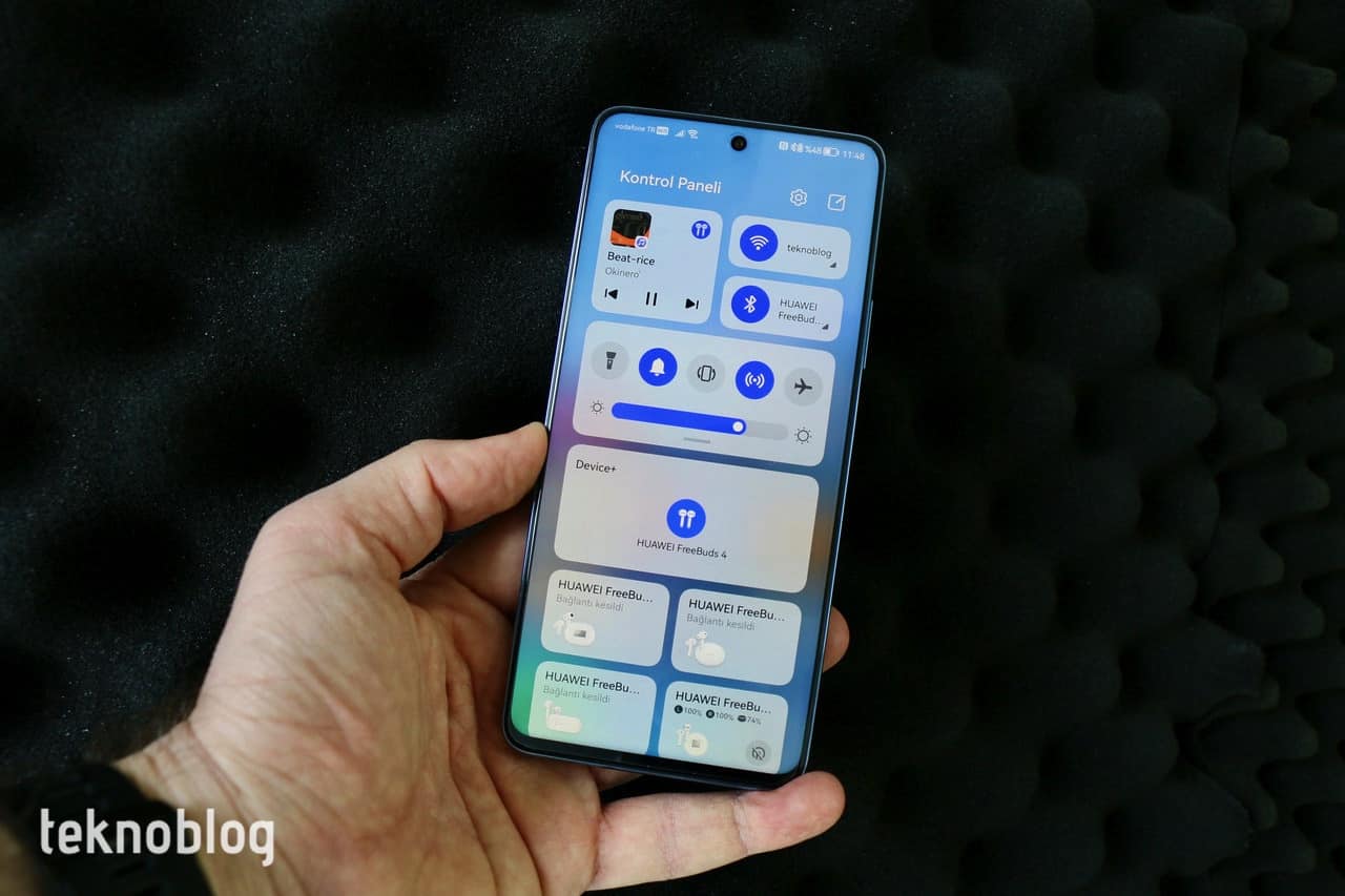 Device+ ve AI Life uygulaması aracılığıyla Huawei Kimliği altına eklediğiniz çevresel aygıtlar da Kontrol Paneli içinde gördüğümüz diğer kutucuklar olarak sıralanıyor. Device+ özelliği, farklı Huawei cihazları arasında iş birliğine olanak tanıyor, Nova 9 SE, daha önce eşleştirilmiş olan Huawei MateBook bilgisayar, FreeBuds kablosuz kulaklık gibi cihazlara hızlıca bağlanıyor. Bu gibi cihazlara ses veya görüntü aktarımı hızlıca başlatılabiliyor. Nova 9 SE ile eşleştirdiğiniz ve yakında olan Süper cihazlar, Device+ kutucuğu içinde görünüyor ve tek tıklatmayla kolayca bağlantı kuruluyor. Bu özelliğin kullanılabilmesi için görsel cihazların aynı LAN’a bağlı olması gerekiyor. Bluetooth özellikli cihazlar ise, bağlantı kurulduktan sonra burada görülüyor.