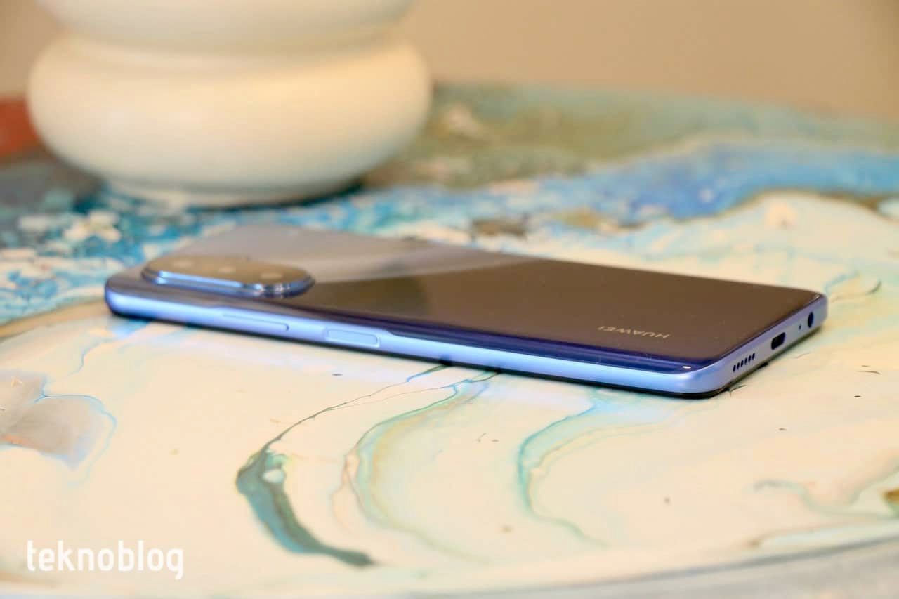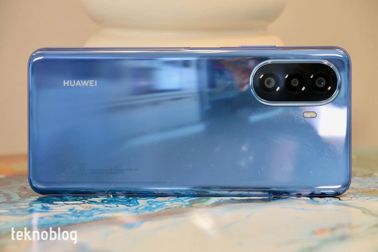 Alt kenarda USB-C portu, hoparlör, mikrofon ve 3.5mm kulaklık jakı var. Sol kenarda ise, üst tarafa doğru yerleştirilmiş olan nano SIM ve microSD kart tepsisi mevcut. Üst kenarda ise ikinci mikrofon bulunuyor. Arka tarafta elips biçiminde bir kamera modülü var. Bu kamera modülünün şekli, daha önce incelediğimiz Nova 9 ve 9 SE modellerindekiyle aynı olsa da, içerideki dizilim çok farklı. Üç tane kameranın dikey doğrultuda sıralandığını görüyoruz. Flaş ise bu adanın dışında yer alıyor. Huawei logosunun yatay doğrultuda yerleşimi, telefonun fotoğraf veya video çekimi sırasında yatay olarak tutulduğunda bir basçek kamera görünümü vermesinin istendiğini düşündürüyor. Bu açıdan daha önceki Huawei telefonlarıyla aynı yaklaşım sergilenmeye devam ediyor.
