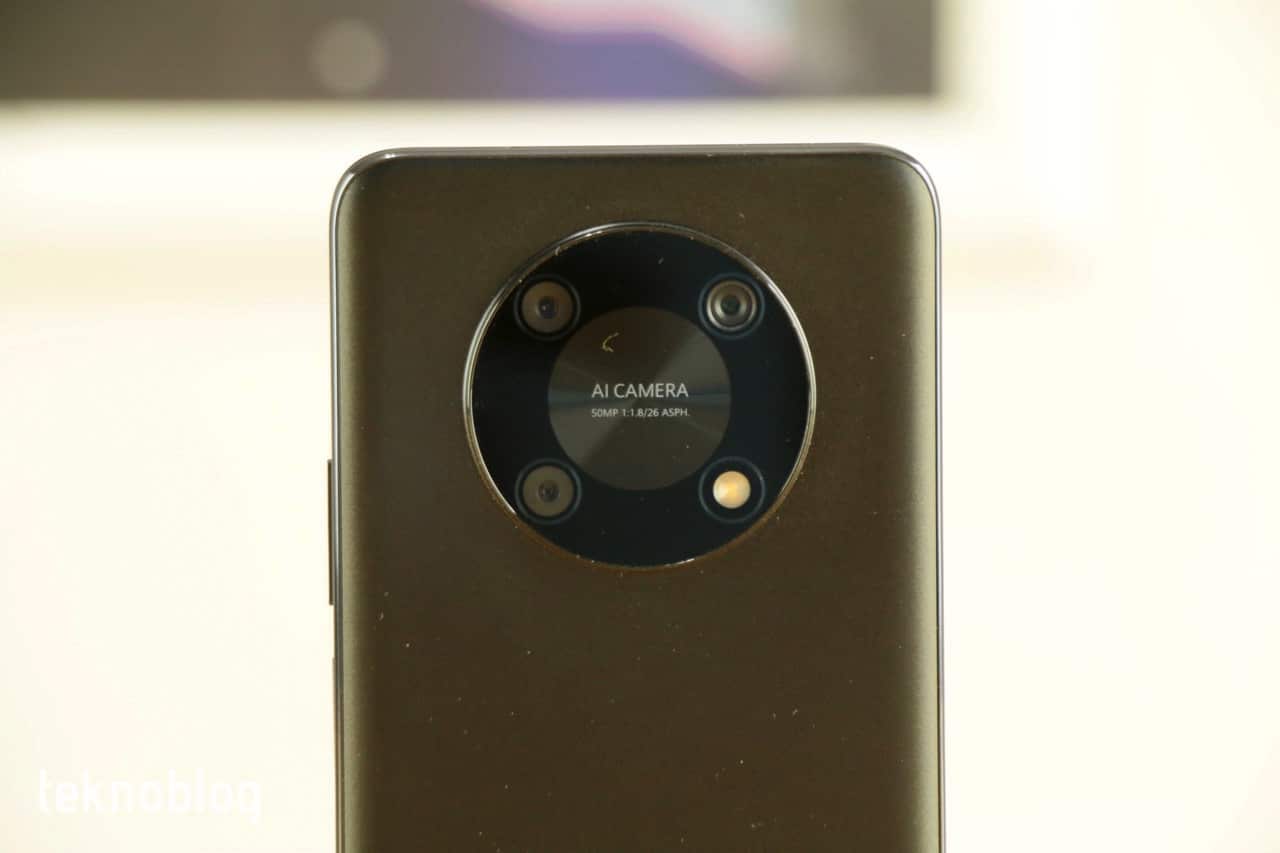 Huawei Nova Y90’ın arkasında üç tane kamera var. Ana kamera 50 megapiksel çözünürlük ve f/1.8 diyafram açıklığı değerine sahip. Bunun yanında 2 megapiksel ve f/2.4 diyafram özellikli derinlik kamerası ve makro kamera mevcut. Önde ise 8 megapiksel çözünürlüklü selfie kamera var. Huawei, hem ön hem de arka kamerada yapay zekânın desteğinden yararlanıyor. Arka kamerayı kullanırken, Kamera uygulamasında kenarda göreceğiniz AI seçeneğini açtığınızda, telefonu doğrulttuğunuz sahne tanınıyor ve çekim modu otomatik olarak ayarlanıyor. Bu şekilde daha zengin tonlara ve iyi parlaklığa sahip çekimler yapmak mümkün. Yapay zekâ destekli sahne algılama gayet hızlı çalışıyor. Ön kamerada ise yapay zekâ yüzünüzün daha net ve güzel çıkmasına olanak sağlayacak ayarlamaları otomatik olarak yapıyor.