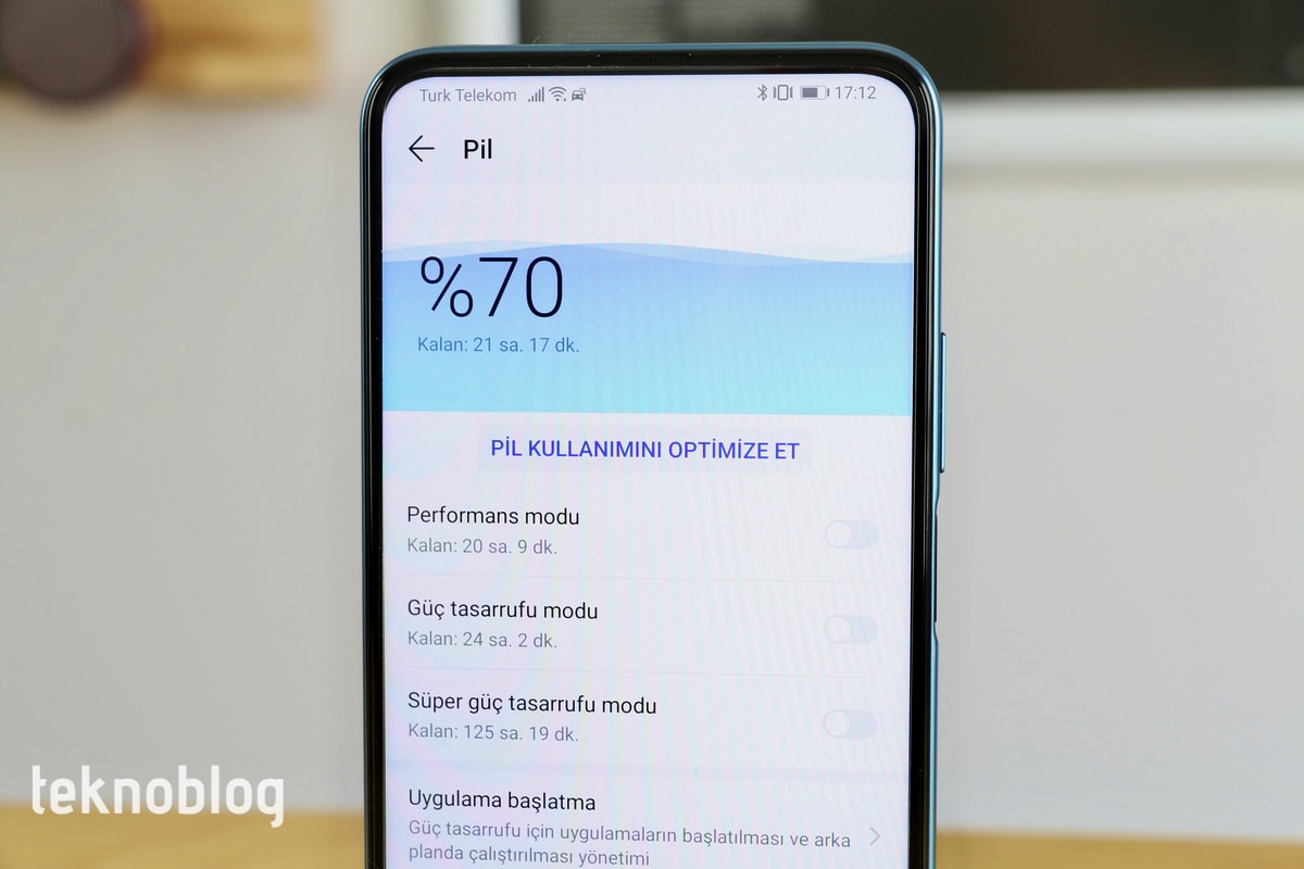 Huawei P Smart Pro’da kullanıcılara pil yönetimi konusunda daha fazla imkan tanıyan farklı modlar da mevcut. Örneğin, performans moduna geçildiğinde telefon daha hızlı çalışıyor. Ancak, pil ömrü de, yüzde 100 doluluk seviyesinde, yaklaşık iki saat kısalıyor. Aynı koşullarda güç tasarrufu modu 5 saate yakın bir artış sağlıyor. Sadece temel ihtiyaçların karşılandığı süper güç tasarrufu modunda ise 140 saate varan bir pil ömrü vadediliyor.