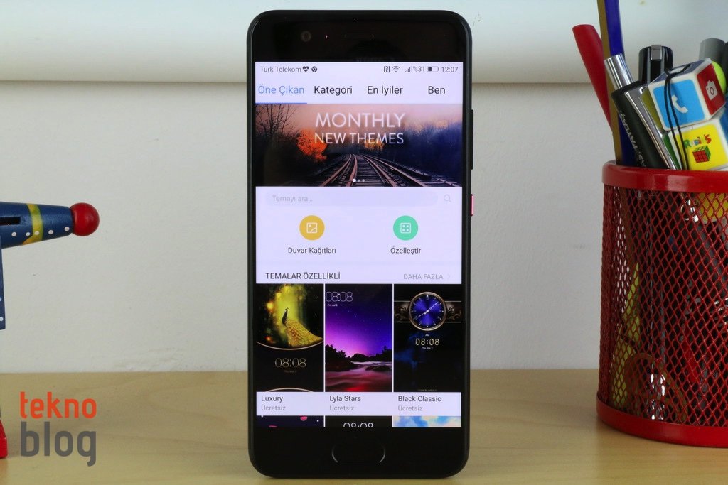 Huawei, Emotion UI içinde farklı temaları kullanma imkanı veriyor. Temalar uygulamasında farklı tema seçeneklerini bulabilirsiniz. Ekranın altında fiziksel bir tuş bulunsa da, telefon başlangıçta navigasyon kontrolleri ekranın alt kısmında yer alacak şekilde geliyor. Bunları kaldırarak navigasyon kontrollerini parmak izi okuyuculu fiziksel tuşa aktarabilirsiniz. Bu tuş, farklı kombinasyonlarla geri, ana ekran ve çoklu görev kontrollerinin işini yerine getiriyor. Başlangıçta biraz zorlanabilirsiniz, ancak kısa zamanda fiziksel tuşa alışarak kullanıcı arayüzündeki alandan tasarruf edebilirsiniz.