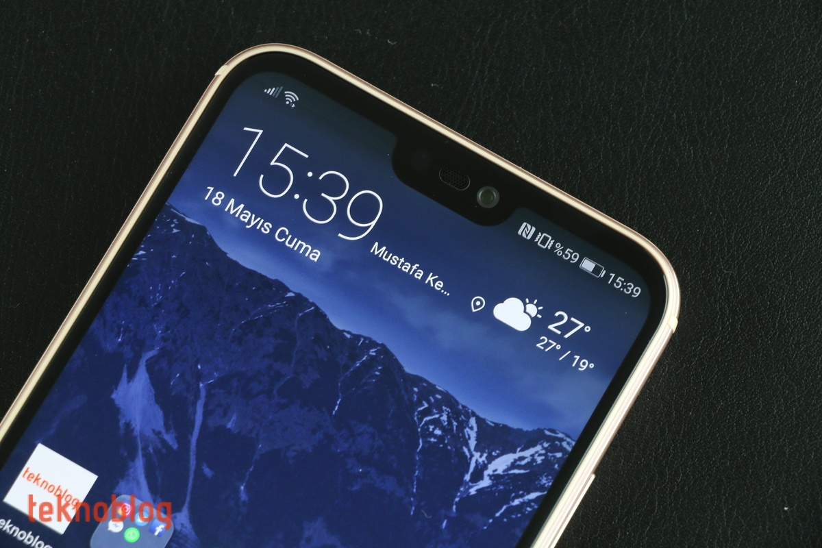 432 ppi piksel yoğunluğuna sahip ekran, P20 Lite’ın ön panelinin yüzde 80.5’lik kısmını kaplıyor. Daha önce de belirttiğimiz üzere, ekranın üst kısmında, pazardaki genel eğilime uygun olarak, bir çentik yer alıyor. Elimize ulaşan test cihazı beta sürümünde olduğu için bu çentiği yazılımsal olarak gizlemek mümkün değildi. Ancak telefonun piyasadaki versiyonlarında çentik yazılımsal olarak gizlenebiliyor.