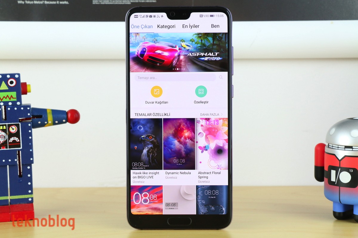 Huawei P20 Pro’nun kullanıcı arayüzünü, sunulan farklı temalarla değiştirebilirsiniz. Bunun yanı sıra ön yüklü olan çeşitli uygulamalar var. Araçlar klasörü altında Ayna, El feneri, Kayıt Cihazı ve Akıllı Kumanda gibi yararlı uygulamaları görüyoruz. Bunun dışında Google’ın da çeşitli uygulamaları yüklü olarak sunuluyor. Google Play Store’dan uygulama ve oyunları indirebilirsiniz. Aslında Huawei’nin de AppGallery adını verdiği bir uygulama katalogu mevcut, ancak Türkiye’de kullanılamıyor.
