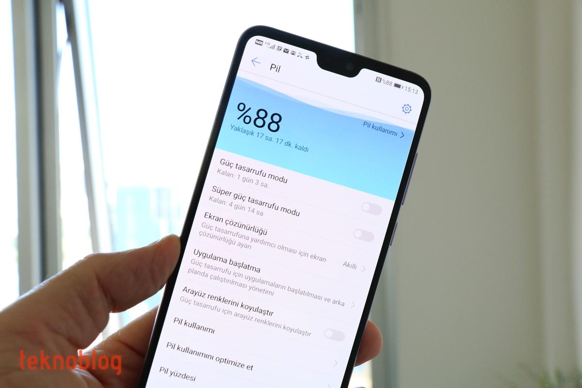 Huawei P20 Pro’nun en güçlü olduğu taraflardan bir tanesi de pili. Bu telefon Samsung Galaxy S9 Plus’tan daha küçük bir hacme sahip olsa da, Huawei 500 mAh daha fazla olacak şekilde, 4000 mAh kapasiteli pili sığdırmayı başarmış. P20 Pro’nun pil performansı gerçekten etkileyici. Gün boyunca telefonu yoğun şekilde kullansanız bile, günün sonunda yüzde 30-40 seviyesinde bir pilin bulunduğunu görebilirsiniz. Biraz daha hafif kullanımda, bu telefonun iki günü aşan bir performans sergilediğine tanık olduk.