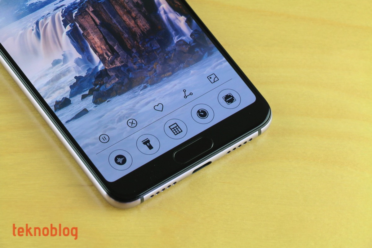 6.1 inç ekran, 18.7:9 gibi sıra dışı bir görüntü oranına sahip. Huawei de, 2018’in ekran tarafındaki tasarım eğilimlerini takip ediyor ve P20 serisi telefonlarında çentiğe yeriyor. Apple’ın iPhone X’unda çentik bölgesi daha geniş, çünkü burada kamera dışında başka elemanlar da bulunuyor. P20 Pro’da ise ahize hoparlörü ve 24 megapiksel kamera bulunuyor. Ayrıca küçük bir LED durum lambasını da unutmadan geçmeyelim. Bu nedenle çentik, çok daha az alan kaplıyor, sonuç olarak ekran yüzde 82 ile gövdeye oranla geniş yer kaplıyor. Ekranın alt kısmındaki biraz daha kalın çerçeve alanı dışında, karşımızda ön yüzü tamamen ekranla kaplı bir cihaz bulunuyor. Huawei, ekranın alt kısmındaki dar alana parmak izi okuyuculu Ana ekran düğmesini ustalıkla eklemiş. Parmak izi okuyucusu çok hızlı biçimde çalışıyor, şimdiye kadar kullandıklarımız içinde en iyi performans sergileyenlerden bir tanesi. Eğer isterseniz, Android’in sanal navigasyon tuşlarını gizleyip, Ana ekran düğmesini çeşitli dokunmatik hareketlerle gezinti için kullanabilirsiniz.