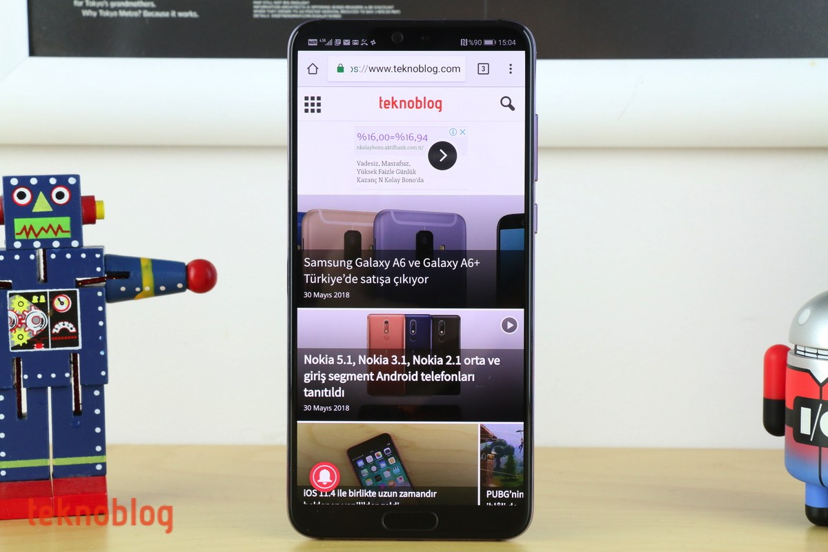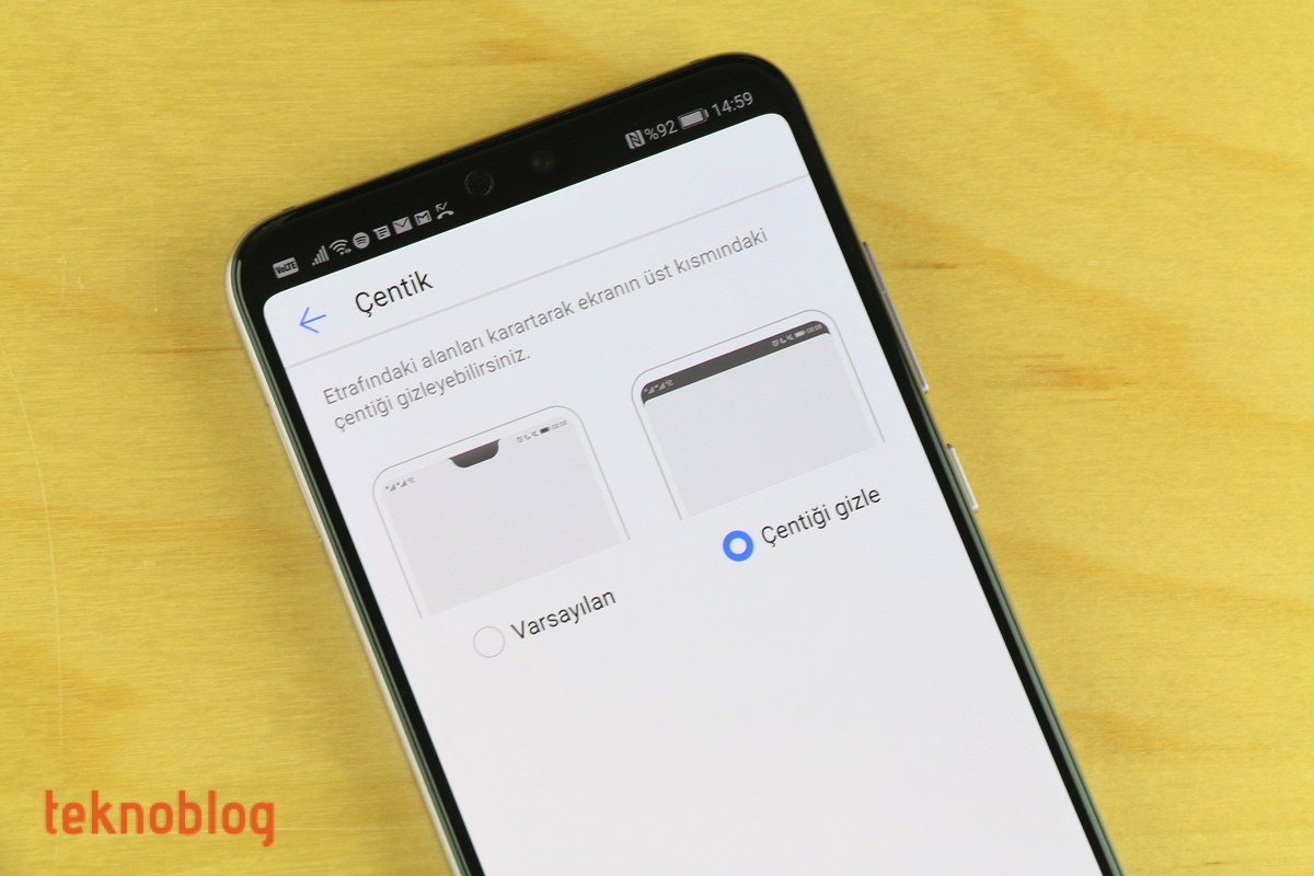 AMOLED ekran gayet canlı ve parlak görünüm sunuyor, güneş altında da rahat bir görüş sunuyor. Geniş görüş açılarına sahip, ancak ekrana belirli açıdan sonra baktığınızda mavi tonlarına doğru hafif bir kaçış göreceksiniz. Siyah renk derinliği çok yüksek, bu da görüntülerin ve renklerin daha canlı ve gerçekçi görünmesine katkıda bulunuyor. Üstüne üstlük, P20 Pro’nun ekranının çentiğini gayet düzgün biçimde gizlemeye de olanak sağlıyor. Ekranı çentikle kullanmakta hiçbir sorun yok, ancak sıradan bir ekran görünümü isterseniz, ekran ayarları içinden çentiğin bulunduğu bölümün arka planını siyah yapabilirsiniz. Durum çubuğu bileşenleri yine olduğu yerde kalmaya devam ediyor, ne var ki dikkatinizi çok fazla çekmiyor.
