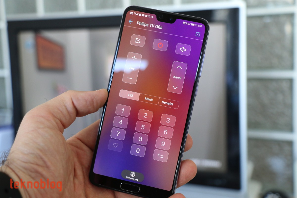 Sağ kenarda ses ve güç tuşları yukarıdan aşağı doğru, yukarı kenara yakın biçimde yerleştirilmiş. Bunların karşısına gelecek biçimde, diğer kenarda da nano SIM kart yuvası bulunuyor. Bu noktada Huawei P20 Pro’nun microSD kart yuvası barındırmadığını belirtelim. Üst kenarda ise ikinci mikrofonun yanı sıra kızıl ötesi portu da görüyoruz. Diğer üreticilerin vazgeçtiği bir arabirimi P20 Pro gibi bir amiral gemisinde görmek güzel. Araçlar klasörü içinde yer alan Akıllı Kumanda uygulaması üzerinden televizyon, ev eğlence sistemi, klima veya benzeri cihazlarınızı uzaktan kumanda edebilirsiniz.