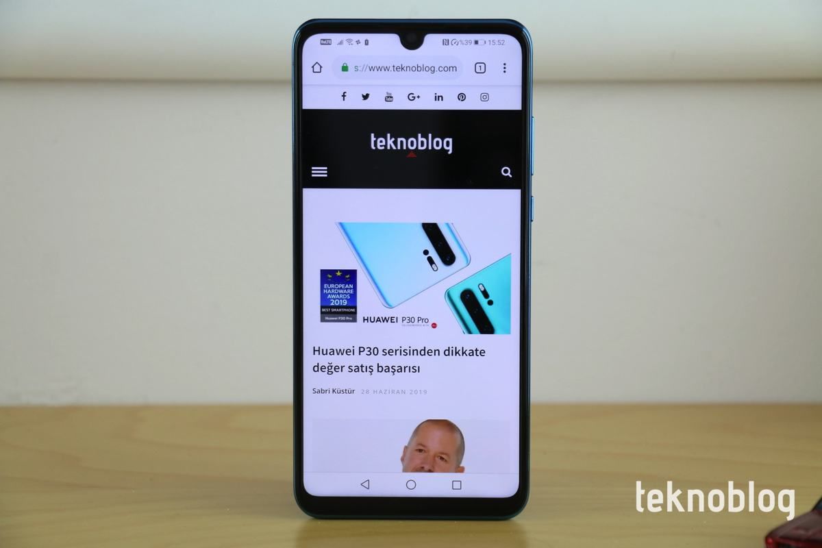 Huawei P30 lite’ın 6.15 inç ekranı 1080 x 2312 piksel çözünürlüğe sahip. Full HD+ çözünürlüklü ekran bu açıdan P30 ve P30 Pro’nun çizgisinden uzaklaşmıyor. 412 ppi piksel yoğunluğu da yeterli keskinliği ve netliği sağlamayı başarıyor. Bu arada ekranın üst kısmında bulunan damla çentik sayesinde tam ekrana yakın bir görsel deneyim yakalanıyor. Yani, YouTube videolarını ekrana yaydığınızda çentik görüntüden çok azını götürüyor. Aynı durum oyunlar için de geçerli. Netflix veya bazı oyunlar ise çentiğin bittiği alanı sınır kabul ederek çentik etrafına kesinlikle bulaşmıyor. Bu arada çentiğin görüntüsü rahatsız ediyorsa, ekran ayarları içinden bunu devre dışı bırakabilirsiniz.