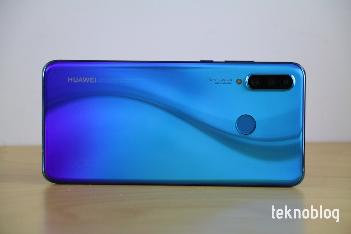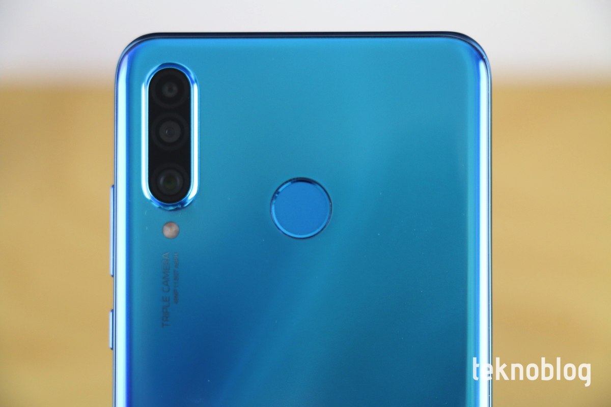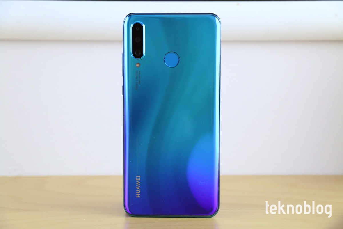 Arka tarafa baktığımızda, Huawei’nin ilk kez P20 serisiyle birlikte kullandığı gradyan renk tasarımını görüyoruz. Telefonun mavi, siyah ve beyaz olmak üzere üç farklı renk seçeneği var. Bunlar içinde en göz alıcı ve eğlenceli görüneni, elimizde de bulunan mavi model. Mavinin tonlarındaki geçiş oldukça etkileyici görünüyor. Bunun dışında üç adet kamera telefonu dik tutarak baktığımızda, düşey eksende konumlandırılmış. Kamera kümesi dışa doğru hafif çıkıntı yapıyor. Bunun hemen altında da flaş bulunuyor. Diğer P30 serisi modellerinde olduğu gibi, Huawei logosu ve diğer yazılar telefonun yatay tutuşuna göre yerleştirilmiş. Böylelikle bir fotoğraf makinesi kullanılıyormuş görüntüsü oluşturuluyor.