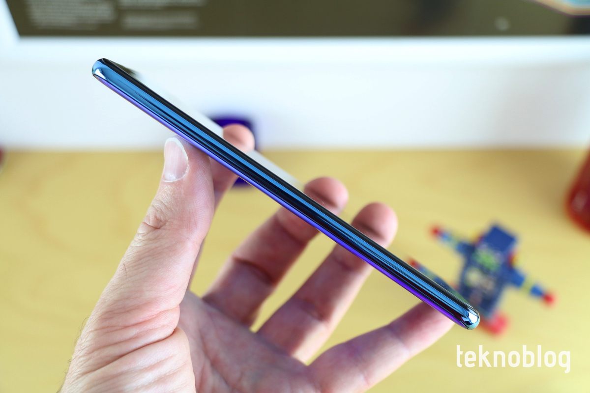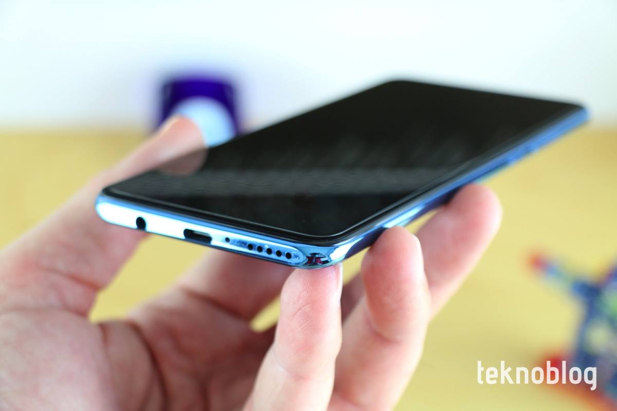 Ön tarafta 6.15 inç ekran büyük bir alan kaplıyor. Yüzde 84.2’lik ekran-gövde oranı az sayılmaz. Ekranın üst kısmında selfie kameranın yerleştirildiği damla çentik var. Kameranın hemen üstünde de ahize hoparlörünü görüyoruz. Ekranın alt kenarı diğer kenarlara göre biraz daha kalın bırakılmış.