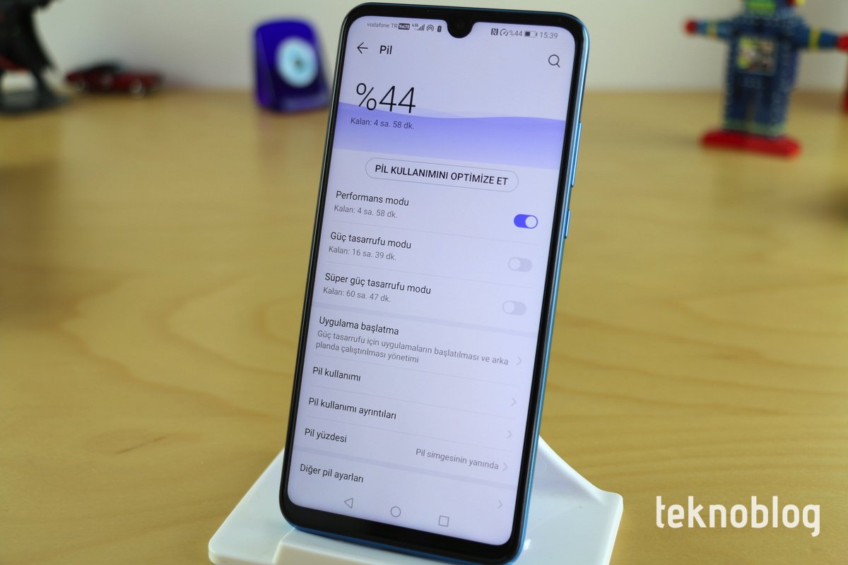 Huawei P30 lite’ın pil kapasitesi 3340 mAh. Bunun günümüzün akıllı telefonları için ortalamalarda bir değer olduğunu söyleyebiliriz. Ekran boyutu ve işlemcisi dikkate alındığında da yeterli bir pil gibi görünüyor. Huawei’nin akıllı telefonlarında çeşitli optimizasyon araçları sunuluyor. Bunlarla arka plan işlemleri kısıtlanabiliyor, gereksiz bağlantı özellikleri kapatılabiliyor. Aynı zamanda pil tüketimi fazla olan uygulamalar konusunda uyarılarda bulunuluyor. Yukarıda bahsettiğimiz farklı performans modları da buna dahil.