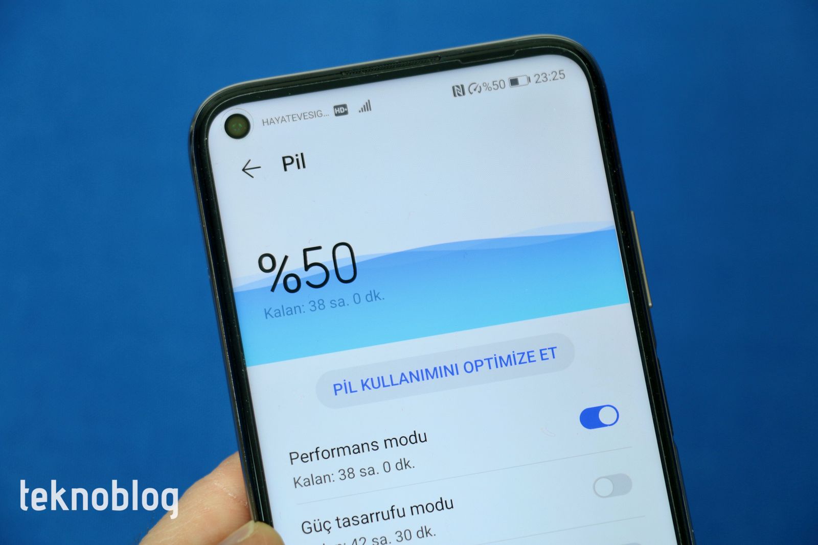 Huawei’nin yeni “lite” telefonunun gelişim gösterdiği önemli alanlardan bir tanesi de pil. P30 lite’dakine göre önemli oranda bir artışla pil kapasitesi 4200 mAh seviyesine çıkarılmış. Ayrıca kutudan da 40W şarj adaptörü çıkıyor. Bu şarj adaptörü sayesinde 20 dakikada yüzde 50, bir saatte ise yüzde 100 doluluğa ulaşmak mümkün oluyor. Üstelik telefon açıkken bu şarj performansı sergileniyor.