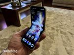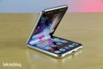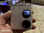Bu telefonun katlandığında boşluksuz bir yapıya sahip olduğunu söylemiştik. Buna izin veren menteşe yapısı, P50 Pocket’ın ekranının açıldığında bombesiz, düze yakın bir yüzey elde edilmesini sağlıyor. Ekrana karşıdan bakıldığında katlanma izi hiç görünmüyor diyebiliriz, yanlardan bakıldığında da çok belli olmuyor. Ayrıca menteşe bölümündeki hafif bir çukurluğun dışında tamamen düz bir ekran hissi verdiğini de belirtmeliyiz.